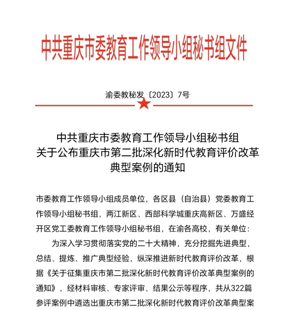 【喜报】我校获评重庆市第二批深化新时代教育评价改革典型案例“二等奖”