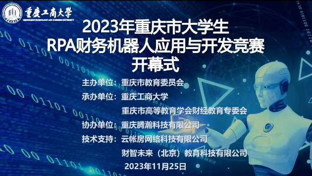本次竞赛旨在深入贯彻落实党的二十大精神,调动大学生参与科普事业和人工智能技术应用的积极性,检验和展示重庆市高校财经商贸类专业教学改革成果,促进各校教学改革经验的学习与交流,进而加快重庆市企业数智化进程,推动地方经济发展。竞赛分为理论知识竞赛和实践能力竞赛,采用团队竞赛的方式进行。理论知识考核内容包括财务与会计基础理论知识、RPA财务机器人应用与开发基础知识,实践能力竞赛环节考核财务机器人的修改与调试、开发与应用。