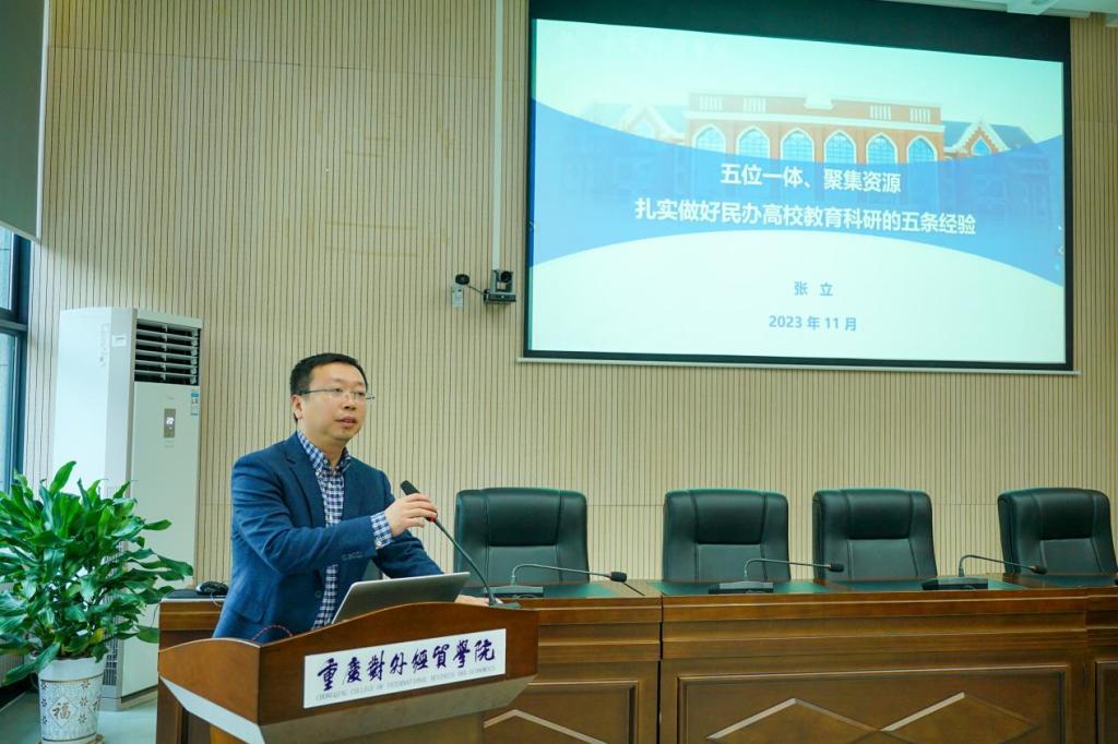 11月28日,重庆市民办高校教育科研工作研讨会在重庆对外经贸学院召开。我校副校长张立教授应邀作了题为“五位一体、聚集资源,扎实做好民办高校教育科研的五条经验”的主题交流发言。