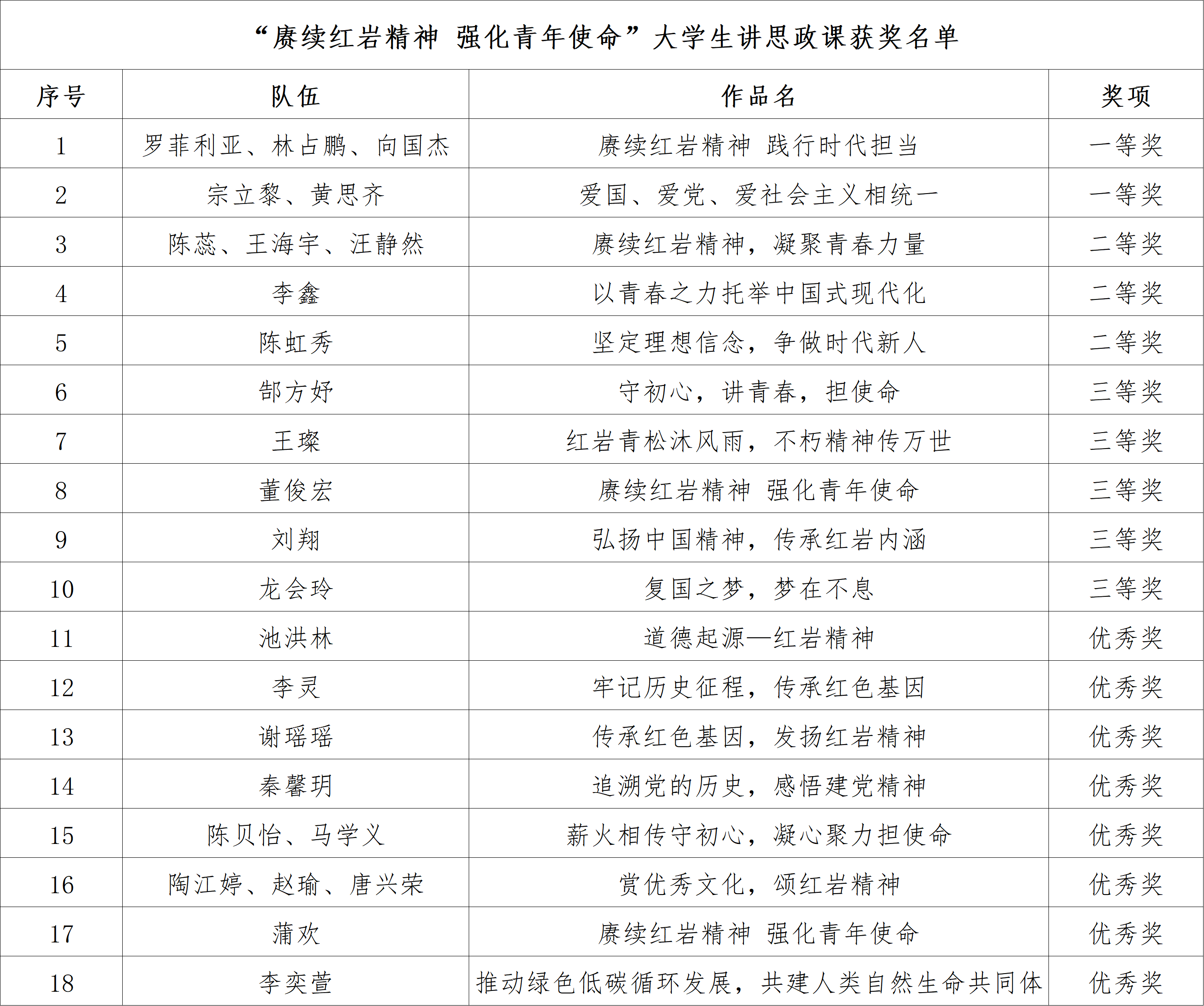 22级网络与新媒体四班宗立黎同学在赛后说到,这是自己第二次参加大学生讲大思政课比赛,从校级二等奖到校级一等奖,从紧张备赛到从容参赛,真切感受到自己的成长和进步。当自己成为了一名授课者,不再是被动接受知识,更愿意去了解授课理论背后的逻辑理路和深层内涵,希望在这条路上,自己还能不断取得进步,做一名有理想、敢担当、能吃苦、肯奋斗的新时代好青年。21级工程管理班罗菲利亚同学在赛后说到,作为一名预备党员,在这次备赛中思考了很多,如何讲好思政课?如何更好地弘扬社会主义核心价值观?通过在备赛中不断和团队成员、指导老师进行沟通,更加充分全面了解了红岩精神的内涵,今后将持续加强理论学习,提升党性修养,以实际行动践行红岩精神,也希望学弟学妹们能够踊跃参加比赛,提升自我!