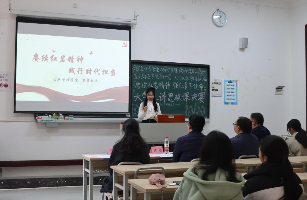为了大力传承弘扬红岩精神,推动构建我校思政课“三个课堂联动”育人模式,形成“大思政课”铸魂育人合力,11月27日、12月4日中午,我校在教学楼先后开展了第十一届大思政课铸魂育人活动之“赓续红岩精神强化青年使命”大学生讲思政课比赛初赛和决赛。马克思主义学院和公共管理学院相关老师、学生代表担任教师组评委。来自全校30多名同学参加初赛,最终,10位同学入围决赛。
