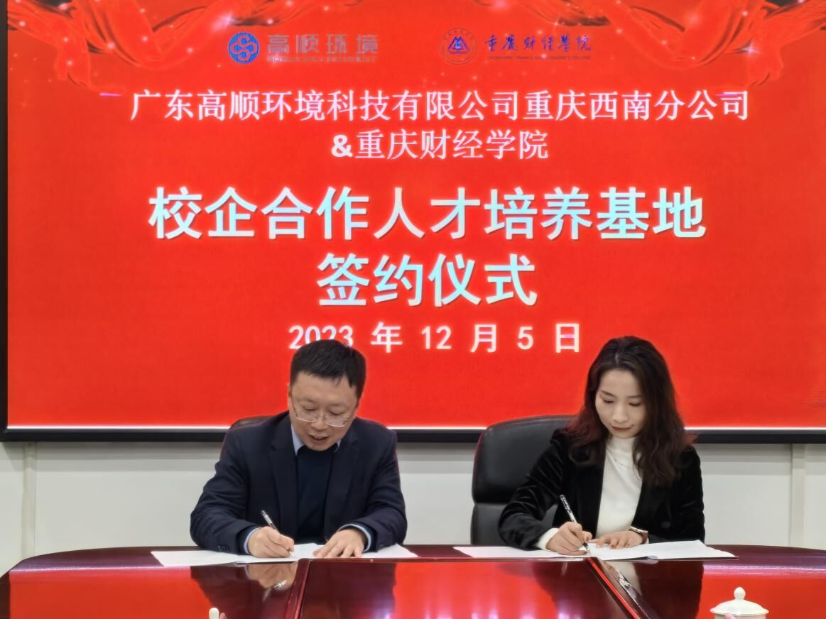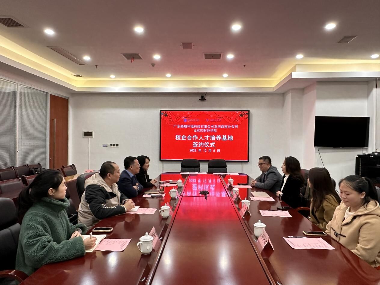 为进一步优化专业建设,推动产教融合走深走实,积极构建校企“共建共享”的良好局面。12月5日下午,我校与广东高顺环境科技有限公司重庆西南分公司(以下简称高顺)在行政楼2303会议室举行校企合作人才培养基地签约仪式。高顺总经理肖潇,我校副校长张立,校企双方有关负责人参加会议。会议由国际商学院院长黄兰主持。