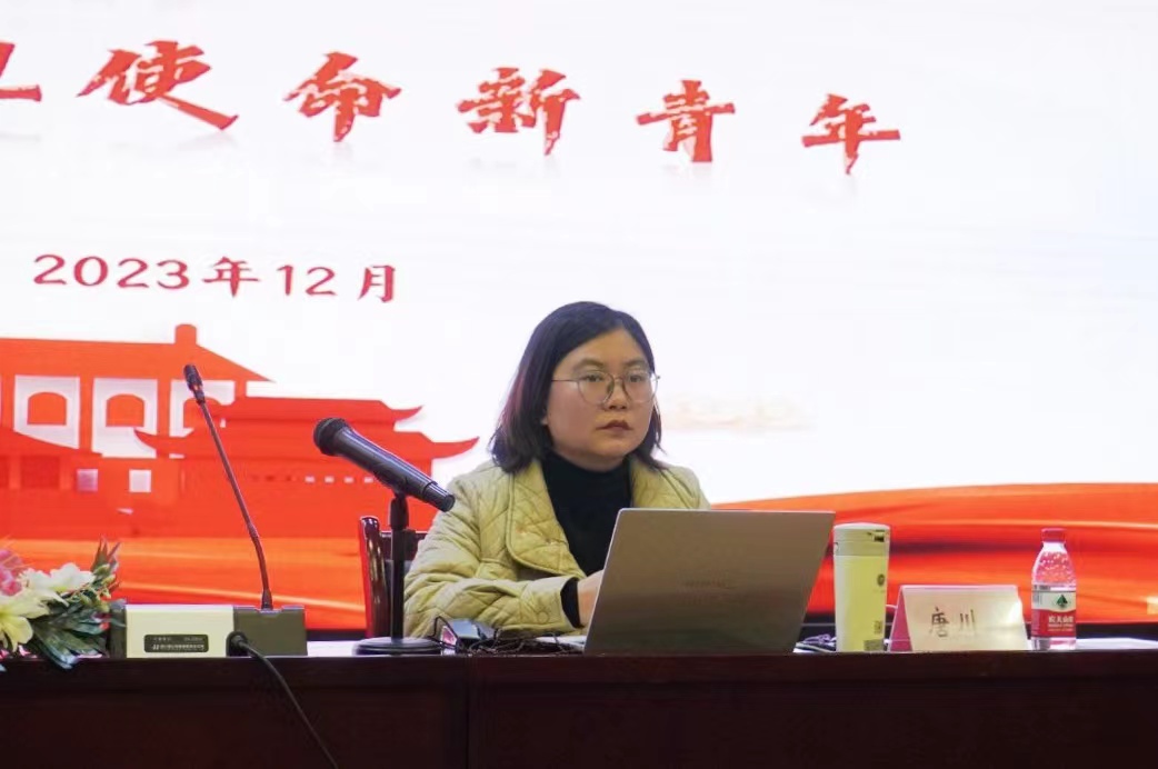 唐川川部长以“砥砺奋进新时代,勇担责任新青年”为题,阐述新时代青年的使命内涵,分析“时代”“中国共产党”“青年”的内涵和联系,解读新时代青年在实现中华民族伟大复兴梦想的天然优势,勉励学员铸牢理想信念之基,努力提升青年精神素养。