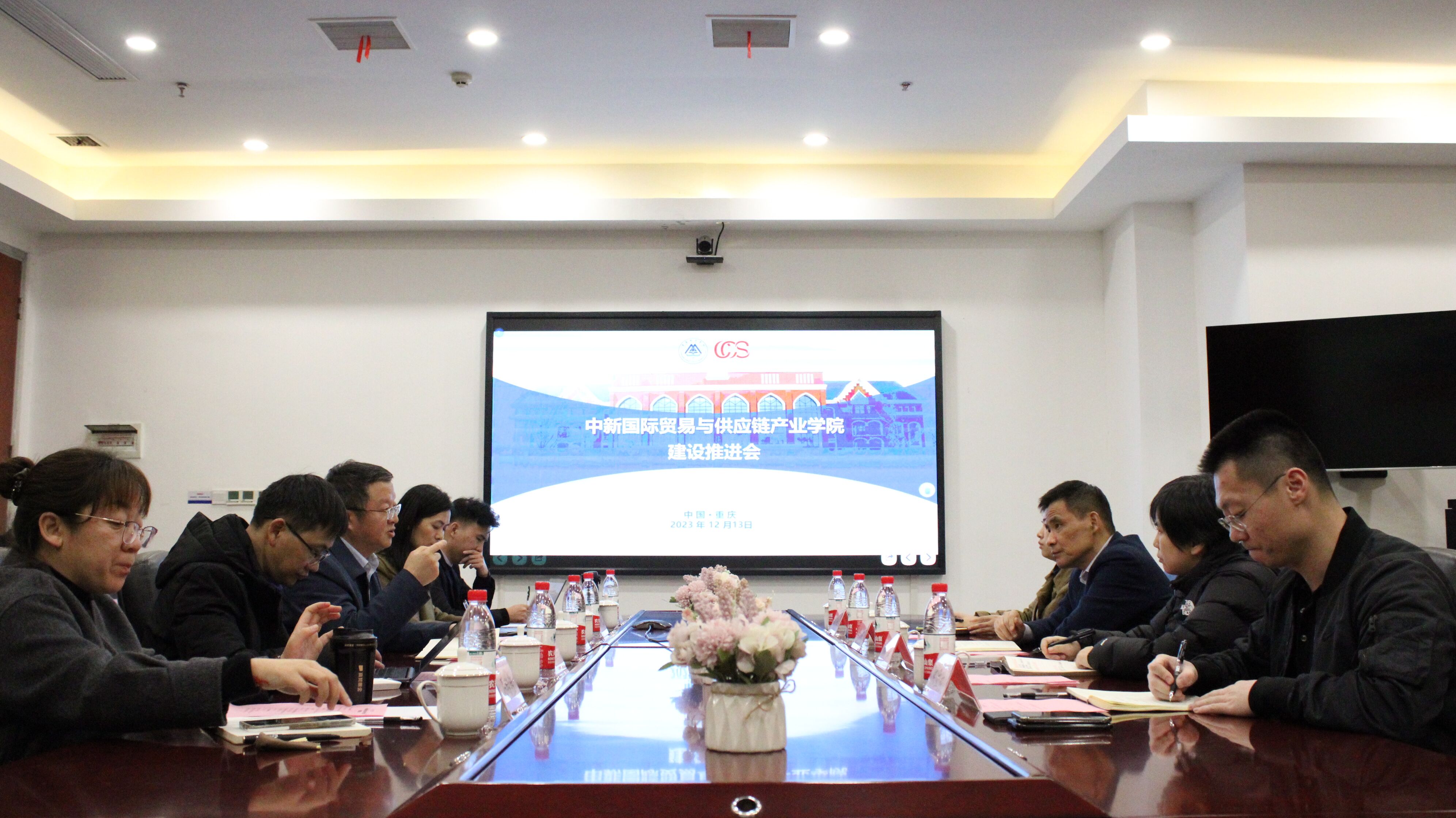 12月13日下午,中新国际贸易与供应链产业学院(以下简称产业学院)建设推进会在我校顺利召开。