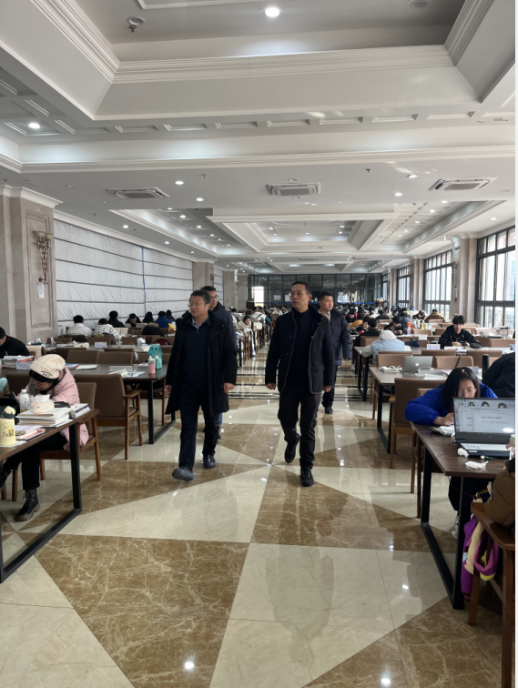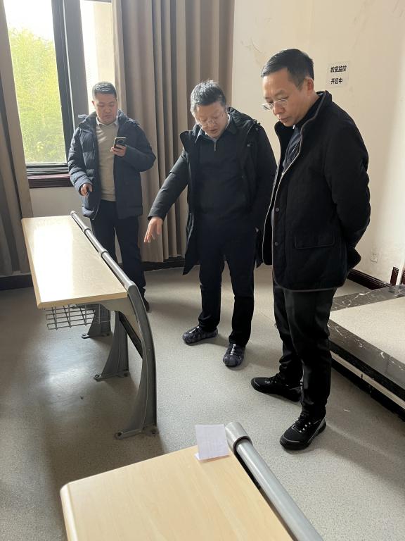 理事长一行前往教学楼3-5楼,详细了解部分教室整体布局、设施设备(投影机、教师机等)的使用情况以及教学环境的整洁程度,听取了教务处对教学设施的需求和建议,以及对当前教学环境的改造思路。