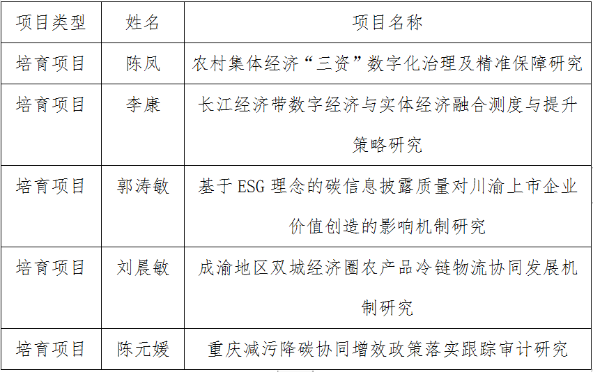 1226日,重庆市社会科学规划办公室发布了《2023年市社科规划博士和培育项目立项名单》。我校获批5项培育项目立项,位居全市同类高校前列。