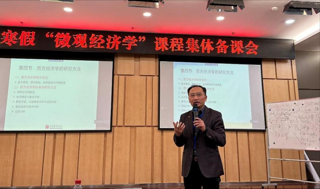 1月20日,由我校市级经济学课程群虚拟教研室发起、重庆工商大学经济学院和西华大学管理学院联合主办的寒假《微观经济学》课程集体备课会进入第二天。本次集体备课会以“专家讲+行家说+学者学”的形式进行,自2018年我校经济学教学团队成立以来,已先后组织12场寒暑假集体备课会、100余场校内课程分析会、80余场课程问诊会,参与备课会的学者、教师累计超过500余人,惠及全国约150所高校。从最初只针对民办高校开放,发展为既有来自中国人民大学等一流高校的资深经济学专家讲座,也有普通院校一线教师面对面参与研讨的全国性集体备课会。