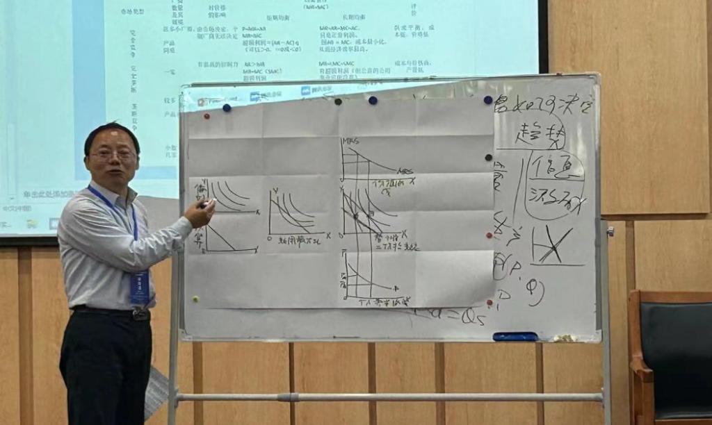 20日上午,由重庆外语外事学院国际商贸与管理学院院长陈玲教授主持,青岛城市学院万玉晴老师、重庆外语外事学院郭树林老师分别就《微观经济学》课程“第四章 不完全竞争市场 ”、“第一章 需求、供给和均衡价格”说课,两位老师分别从课前导入、课堂教学、课后实践等方面全面阐释了各自说课章节的教学内容和教学形式,并通过具体教学案例和实践活动延伸和巩固教学内容;青岛城市学院工商管理学院院长陆洲教授结合多年教学实践,围绕教学实施、尤其对市场结构划分、完全竞争企业市场决策策略等内容提出了宝贵的建议;李政军教授从理论出发,运用思维导图,深入总结凝练、推导、演示了两个章节的逻辑过程,并激发了研讨会各位老师的深入思考和热烈讨论。