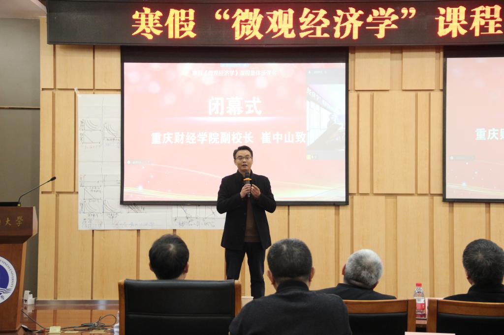 1月21日下午5:00,我校寒假《微观经济学》课程集体备课会闭幕式顺利举行。校长吴华安、副校长崔中山、教务处处长李红平,重庆工商大学教务处处长骆东奇出席闭幕式。