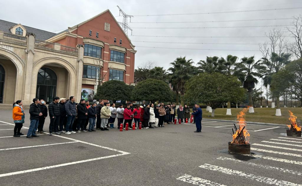 会后,参训人员在食堂前广场进行了实战灭火操作,掌握消防器械的使用技巧。