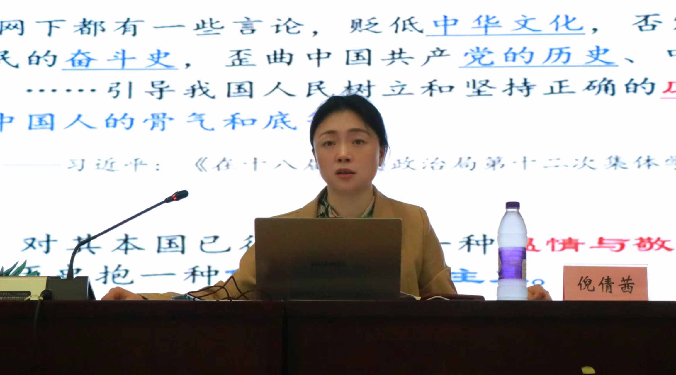 倪倩茜部长以“坚定文化自信,加强社会主义文化建设”为题,紧扣“坚定文化自信”“牢牢掌握意识形态工作领导权”“推动社会主义文化繁荣兴盛”“提高国家文化软实力,讲好中国故事”四个方面的内容,解读了坚定文化自信的内涵,要求全体学员深入学习习近平新时代中国特色社会主义思想,将道路自信、理论自信、制度自信、文化自信牢记于心。