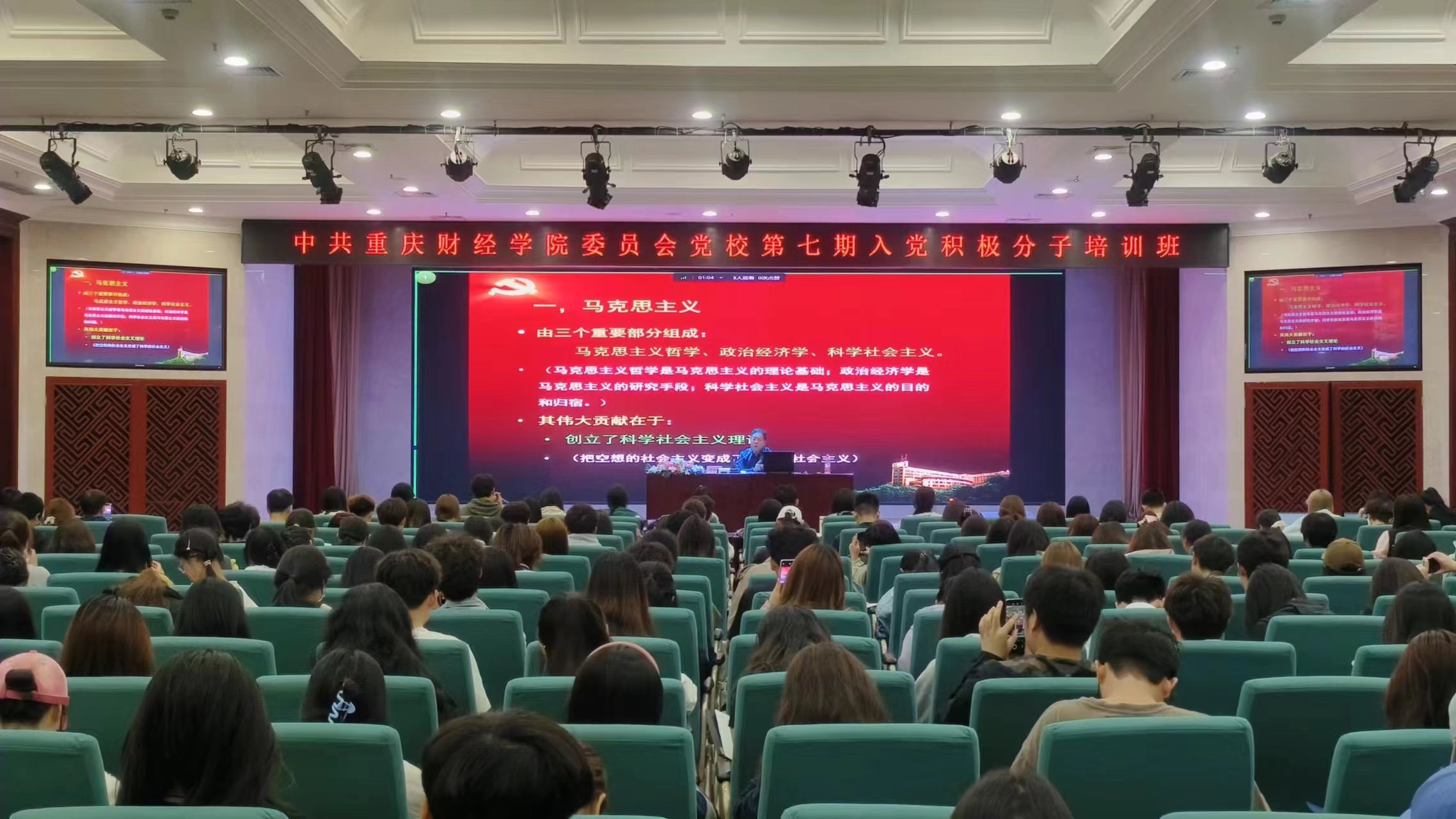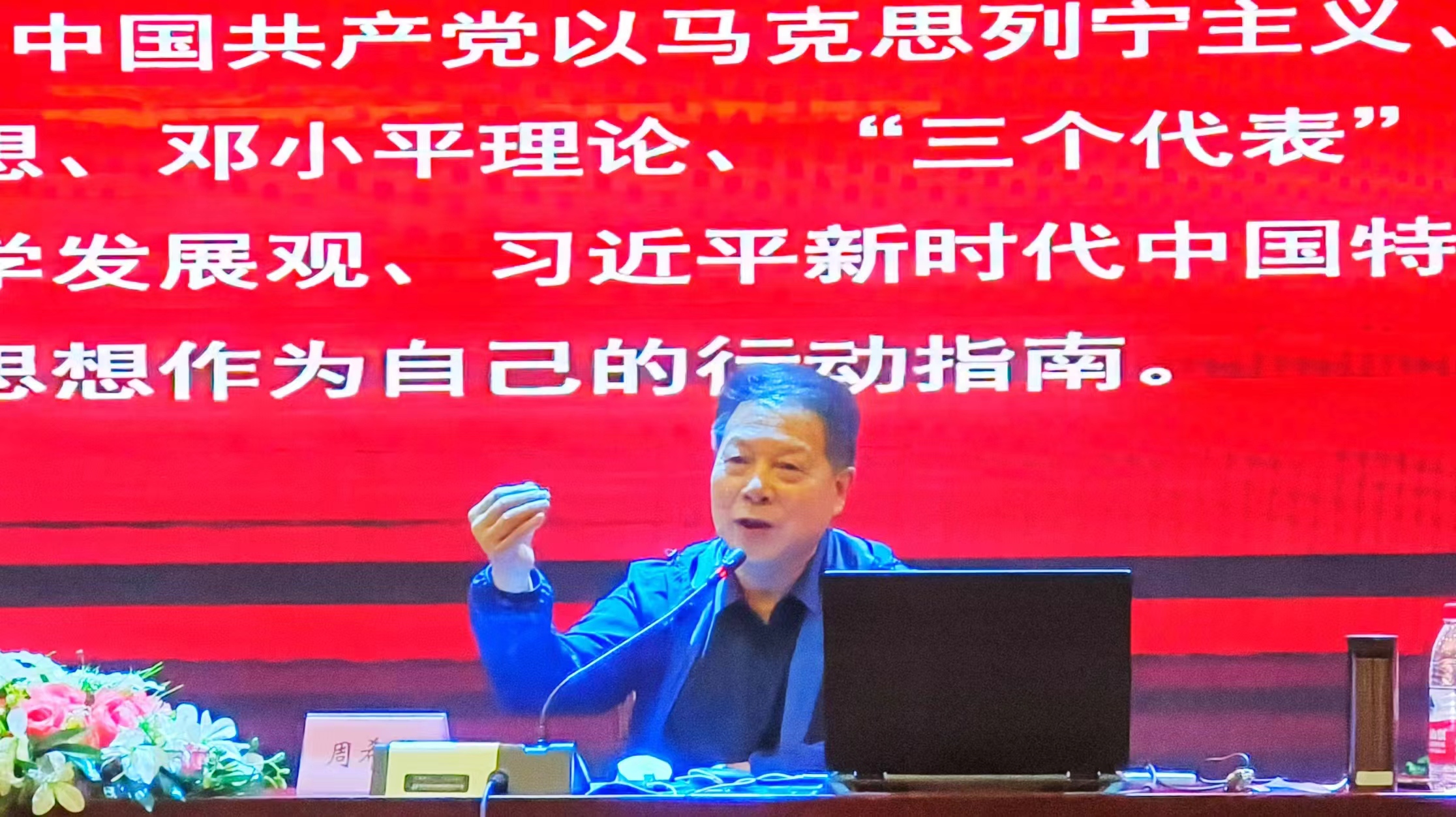 周希贤书记以“中国共产党的指导思想”为题,围绕“党的指导思想”“中国特色社会主义理论体系”“习近平新时代中国特色社会主义思想”三方面的内容,解读了马克思列宁主义、毛泽东思想、邓小平理论、“三个代表”重要思想、科学发展观、习近平新时代中国特色社会主义思想的主要内容和丰富内涵,并鼓励全体学员加强理论学习,不断提升自己,争取早日加入党组织。