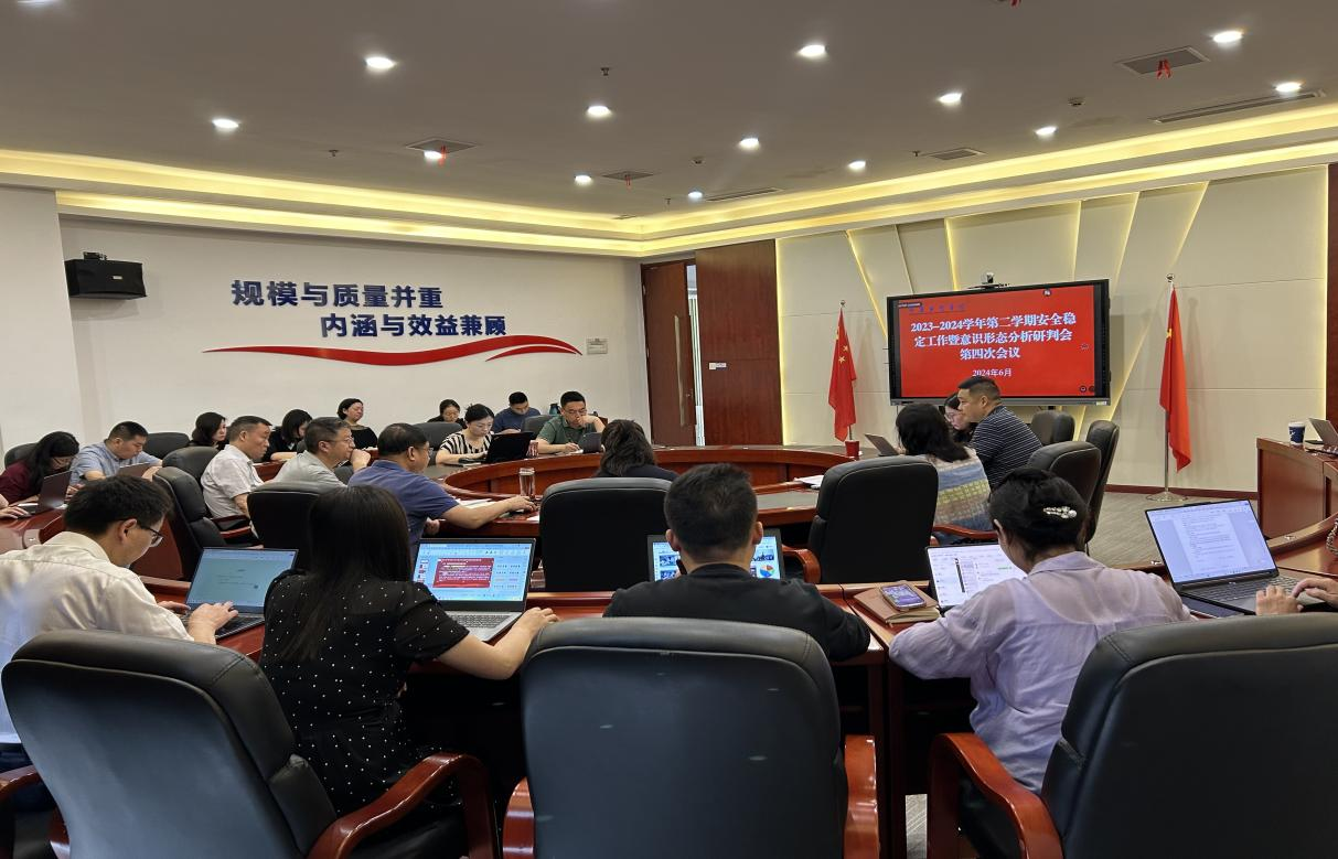 会议分析研判学校当前安全稳定工作面临的形势与挑战,就加强值班值守、做好反诈宣传教育、交通安全管理、食品安全管理、心理健康教育、毕业生离校手续办理等安全稳定工作相关事项进行安排部署。