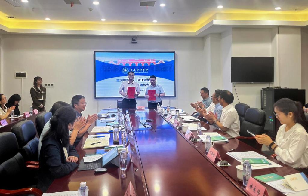 崔中山与郑剑辉签署双方战略合作协议。根据该协议,我校将与湖州市建立全面、长期、战略合作关系,重点在人才对接、技术支持、产学研合作等方面开展多层次合作。