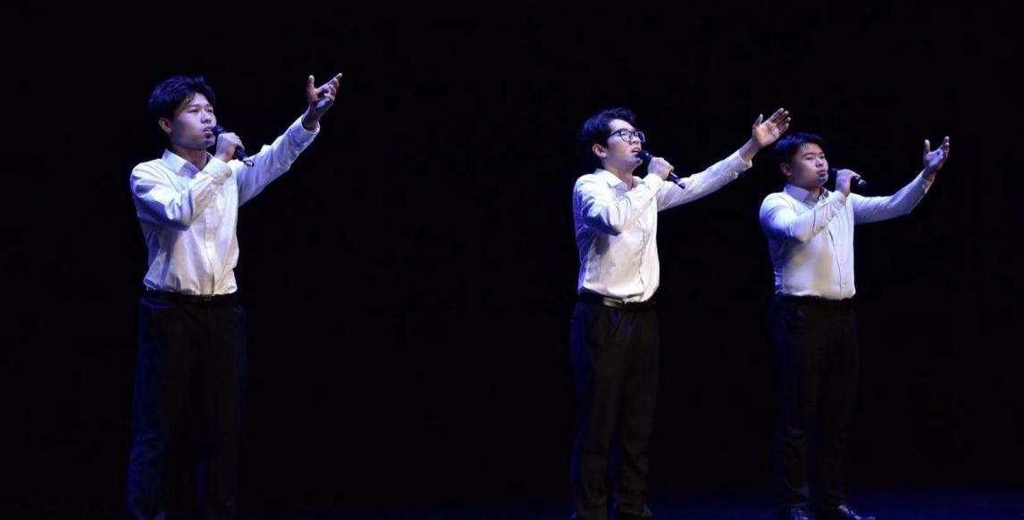 近日,我校新媒体艺术学院播音与主持艺术专业学生作为唯一民办院校代表受邀参演在重庆大剧院举行的星星梭剧院之声“夏,在激情的日子里”主题朗诵会。在学院专业教研室李雪莉老师的组织和指导下,李航、黄雨萌同学展演作品《飞过的自由》;曾祥、王鹤凝、向昱霖同学展演作品《蜀道难》受到专家老师与现场近百名观众青睐。