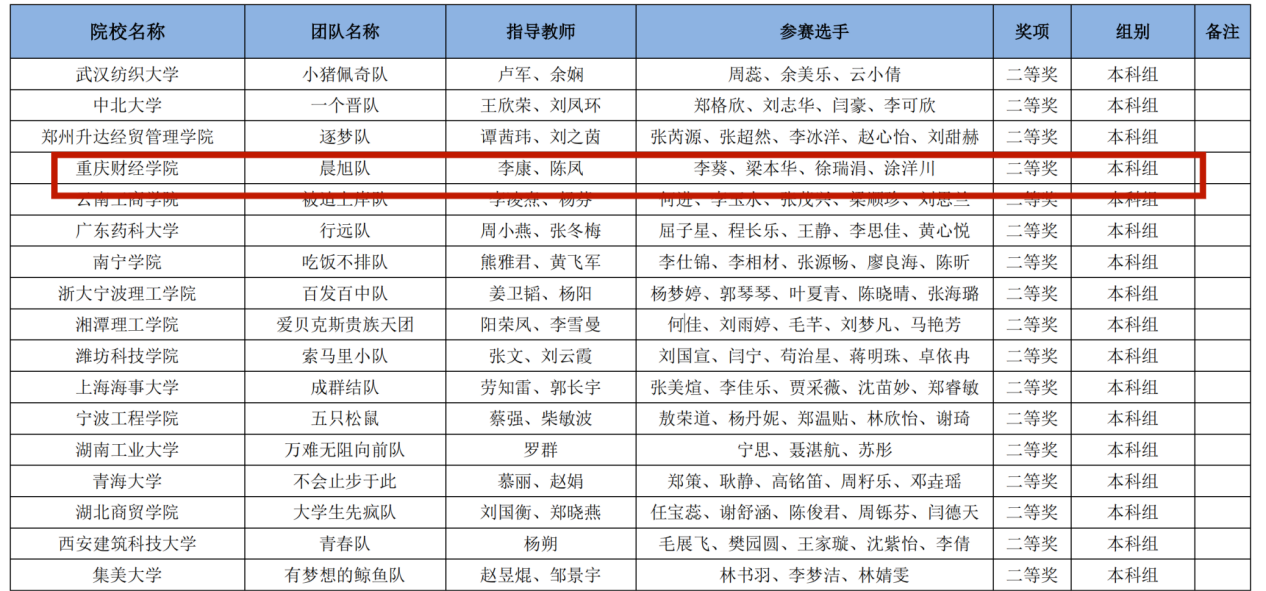 此次获奖不仅是对这两队学生个人能力的肯定,也是对我校财富管理学院和会计学院教育教学水平的认可,更是我校教育教学成果的充分体现。我校一直注重培养学生的实践能力和创新精神,鼓励学生积极参与各类学科竞赛活动,为学生提供了广阔的发展空间和锻炼机会,希望重财学子们再接再厉,再创佳绩!