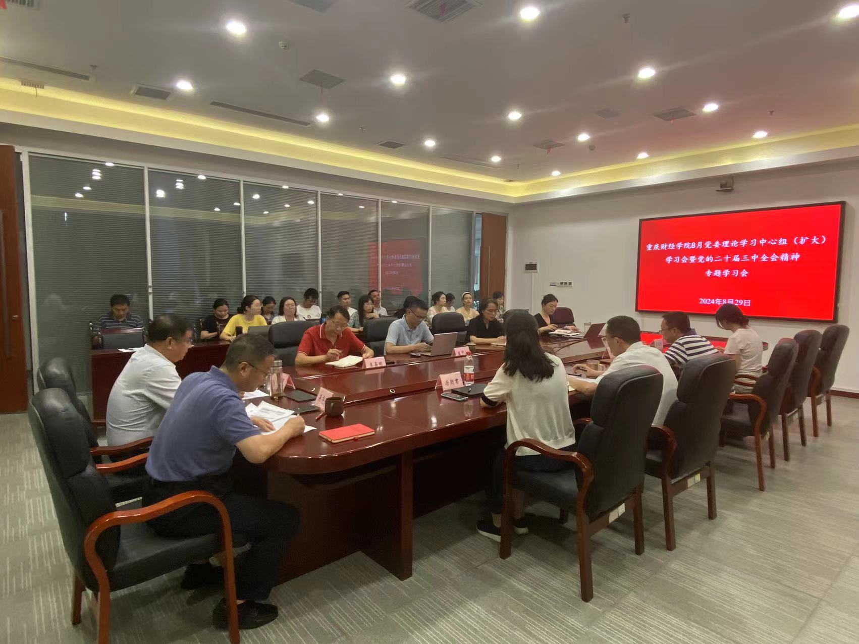 为深入学习贯彻党的二十届三中全会精神,推动学校事业改革发展。8月29日,我校召开党委理论学习中心组(扩大)学习会暨党的二十届三中全会精神专题学习会,深入学习《中共中央关于进一步全面深化改革、推进中国式现代化的决定》和习近平:关于《中共中央关于进一步全面深化改革、推进中国式现代化的决定》的说明。学校党委理论学习中心组成员,党委职能部门负责人、各学院书记参加会议,党委书记张毅同志主持会议。