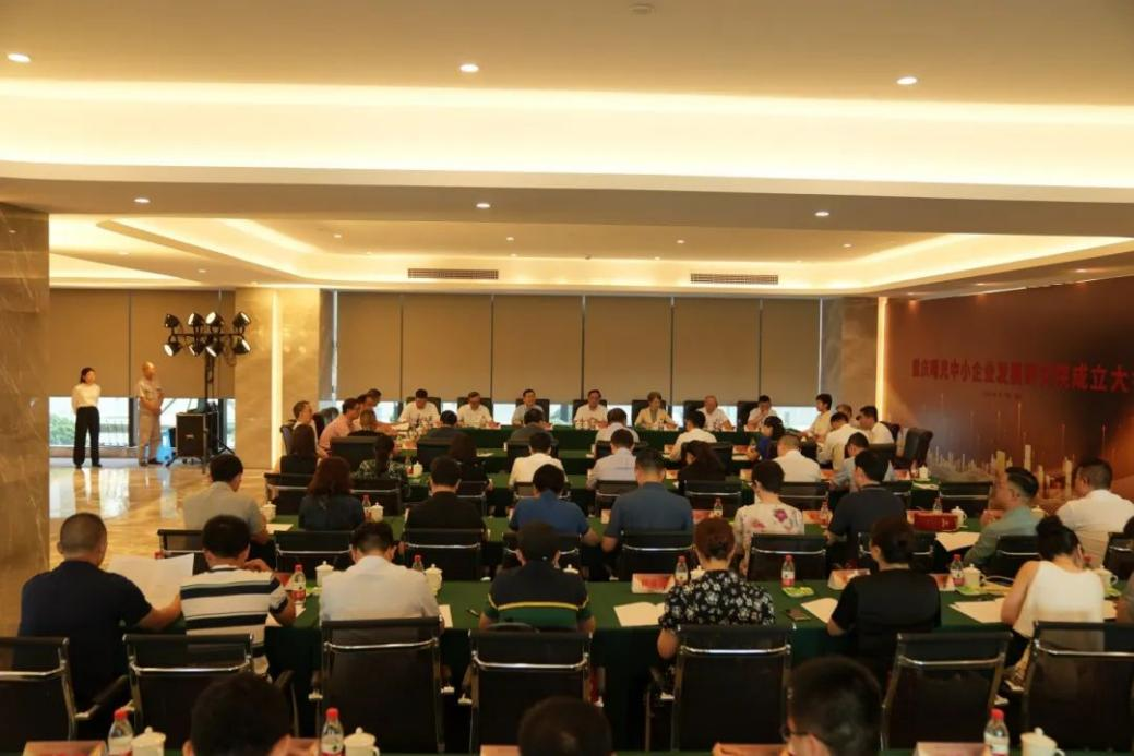 为助推我市中小企业高质量发展,助力重庆打造成为西部地区营商环境排头兵、内陆地区民营经济健康发展新高地、全国民营企业家健康成长的示范城市,在重庆民建市委会的大力推动下,8月30日下午,重庆曙光中小企业发展研究院成立大会在市曙光数字经济产业园举行。民建中央副主席、重庆市委会主委沈金强,中共重庆市委统战部副部长吴萍,市社科联党组书记、副主席李保海,市民政局二级巡视员周利民出席会议。相关市级部门职能处室负责同志、全市10余个民建高校基层组织负责人和重庆曙光中小企业研究院全体成员共计70余人参加会议。