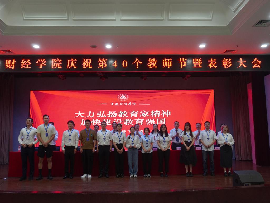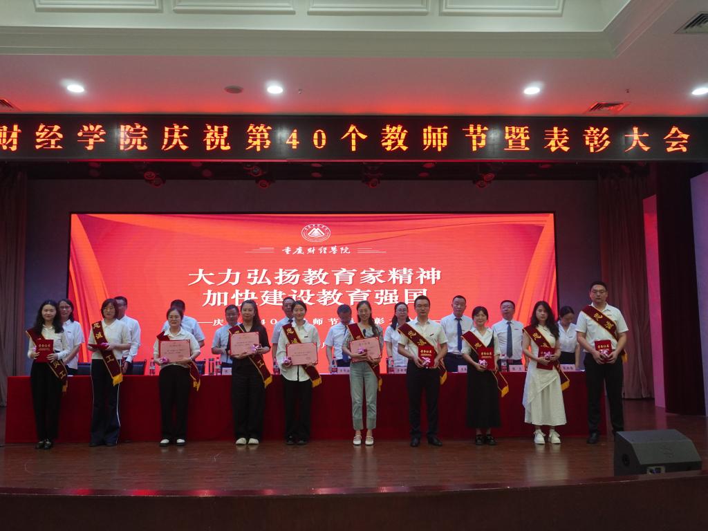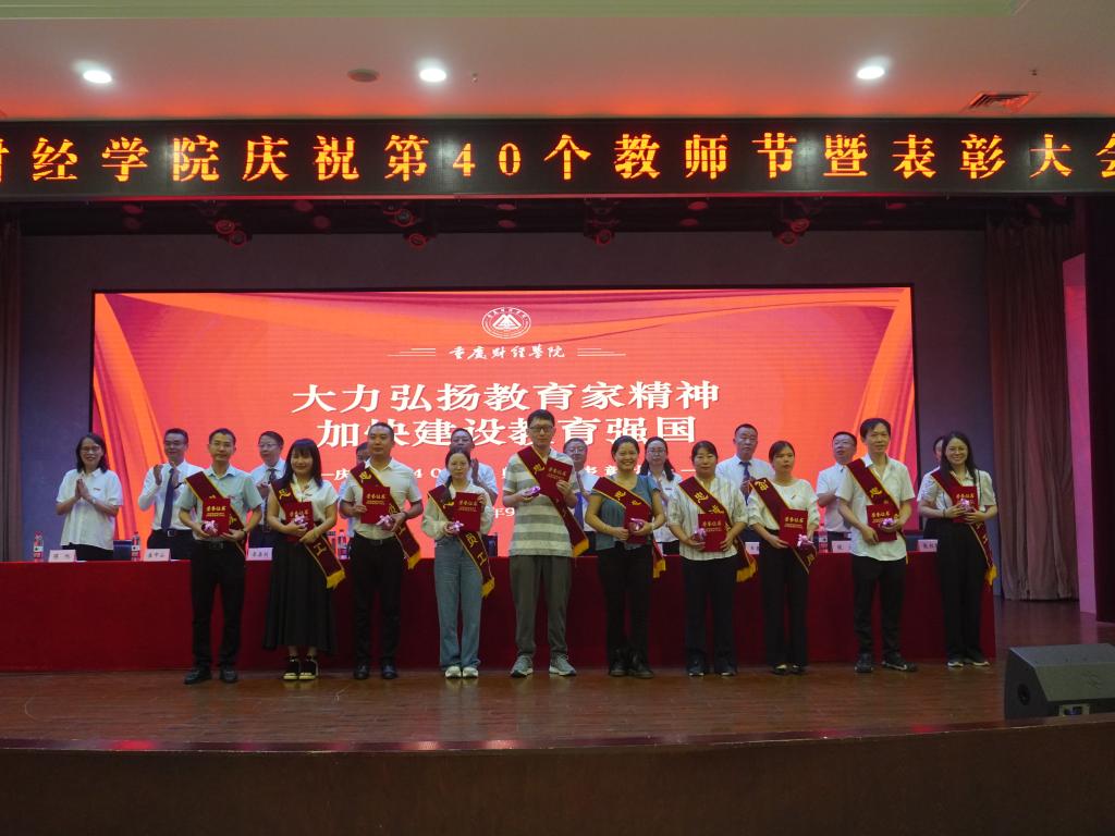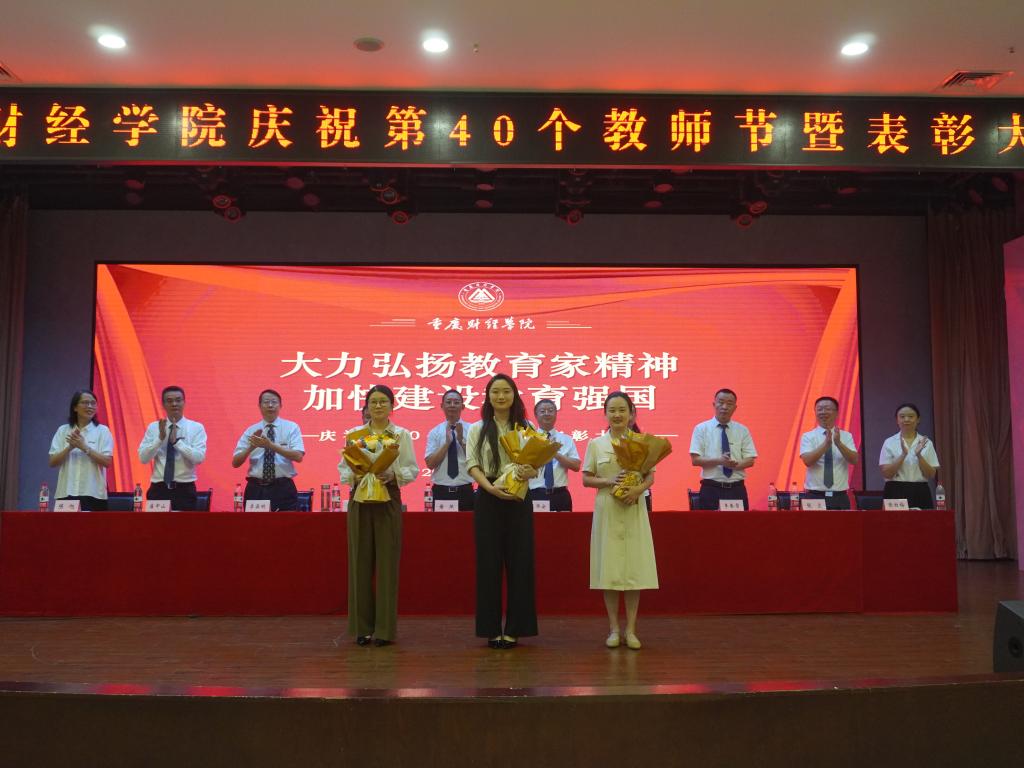 学生代表李航同学向老师们送上节日祝福,他表示,老师的辛勤付出与无私奉献,值得每一位学生铭记于心,学生们将用实际行动践行“明德、健体、博学、笃行”的校训,不断进取,开拓创新,以优异的成绩和美好的未来回报老师和母校的用心培养。优秀辅导员代表封雨洁、优秀教师周婧玥、优秀教育工作者贺明玲、十年忠诚员工陈镜羽依次上台发言,他们分享了自己的成长与变化,诉说了自己的感动与欢喜,讲述了与“重财”共克时艰、砥砺前行的暮暮朝朝。