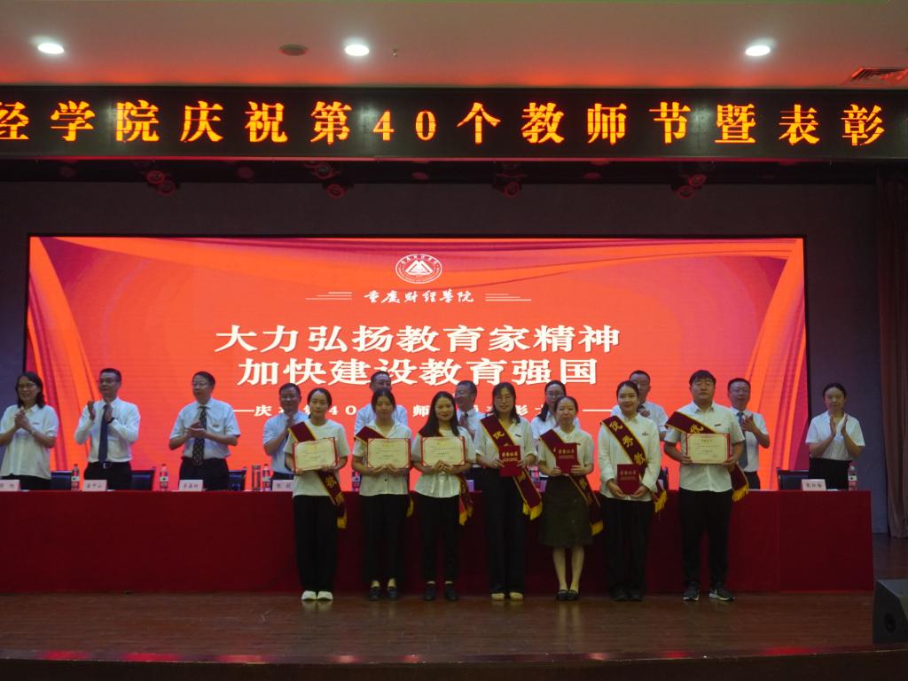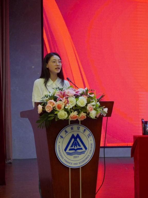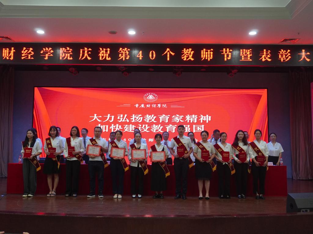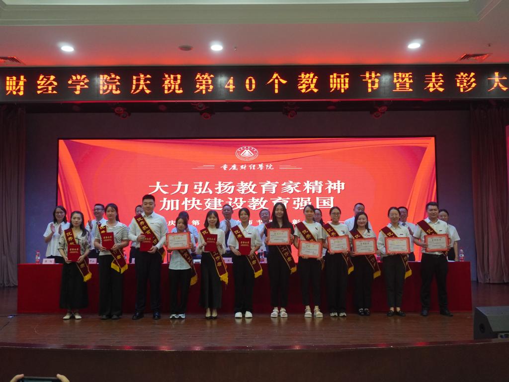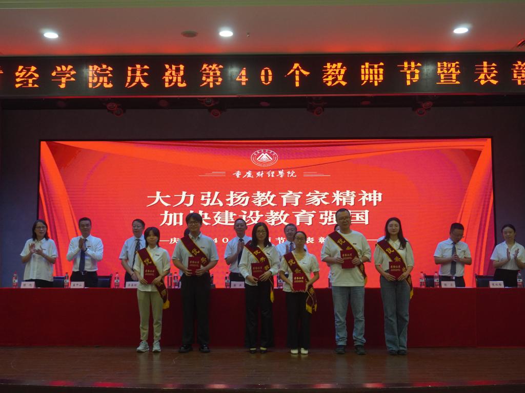 学生代表李航同学向老师们送上节日祝福,他表示,老师的辛勤付出与无私奉献,值得每一位学生铭记于心,学生们将用实际行动践行“明德、健体、博学、笃行”的校训,不断进取,开拓创新,以优异的成绩和美好的未来回报老师和母校的用心培养。优秀辅导员代表封雨洁、优秀教师周婧玥、优秀教育工作者贺明玲、十年忠诚员工陈镜羽依次上台发言,他们分享了自己的成长与变化,诉说了自己的感动与欢喜,讲述了与“重财”共克时艰、砥砺前行的暮暮朝朝。