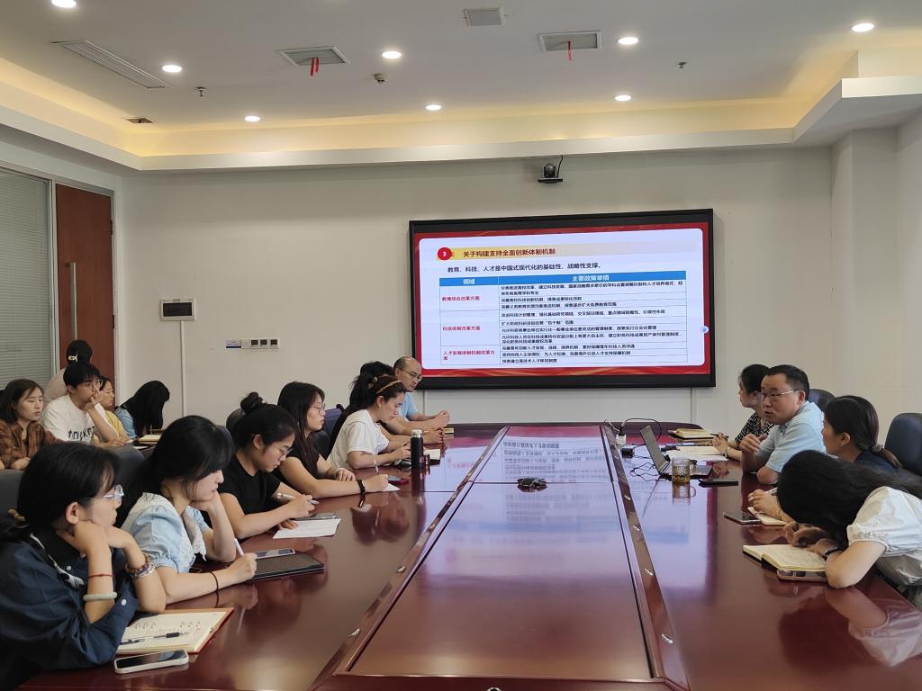 李春雷副校长首先介绍了党的二十届三中全会召开的背景,他指出,党的二十届三中全会是在以中国式现代化全面推进强国建设、民族复兴伟业的关键时期召开的一次十分重要的会议。随后,他就全会的重大意义、重要讲话精神、重大举措、重要指示要求以及抓好贯彻落实等五个方面内容进行了深入浅出且生动具体的宣讲。其中,他重点宣讲了坚持教育优先发展、继续深化教育改革等有关教育的指导意见。他表示,这次学习不仅是对我们党最新理论成果的一次深刻领会,更是推动公共管理学院教育教学改革、促进师生全面发展、提升学院整体实力的重要契机。