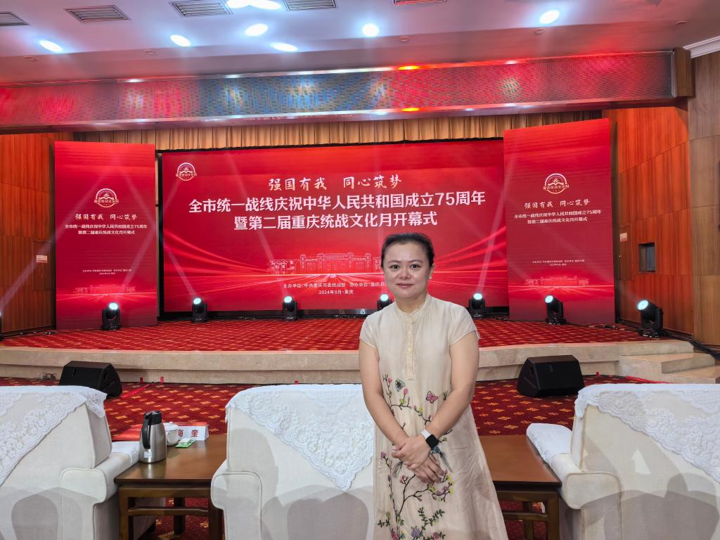 9月26日,全市统一战线庆祝中华人民共和国成立75周年暨第二届重庆统战文化月开幕式召开。重庆市侨青会副会长、重庆欧美同学会理事、我校国际合作与交流处处长王晓颖教授受邀出席活动。