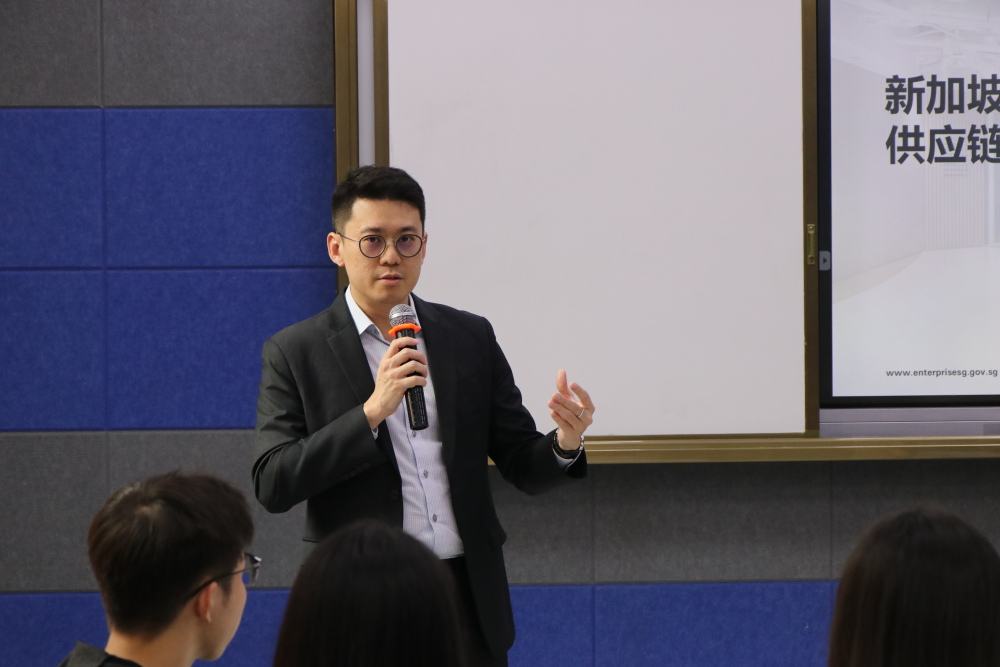 胡晨经理以“新加坡国际贸易与供应链发展”为主题,详细阐述了新加坡如何利用其独特的地理优势、金融贸易设施、多元化网络、高效物流系统以及稳定的法律政策环境,成功打造成为国际贸易中心和全球最佳转运枢纽。他的分享让学员们对新加坡的国际贸易与供应链体系有了更为全面和深入的了解。