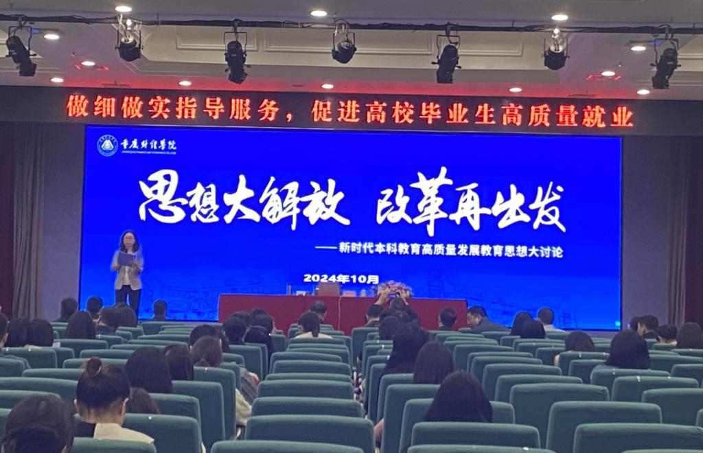 为深入贯彻落实党中央、国务院关于高校毕业生就业创业工作的重要决策部署和市委市政府有关工作要求,切实提升学生就业创业能力和就业质量,在我校深化“思想大解放、改革再出发”新时代本科教育高质量发展教育思想大讨论行动之际,10月25日,重庆市学生就业与创新创业服务中心唐雪平主任莅临我校,为全校就业工作者开展题为“做细做实指导服务,促进高校毕业生高质量就业”的专题辅导报告。报告会由党委副书记房朝君主持,在校校领导、相关职能部门负责人、二级学院党政负责人和全体专兼职辅导员等130余人参加