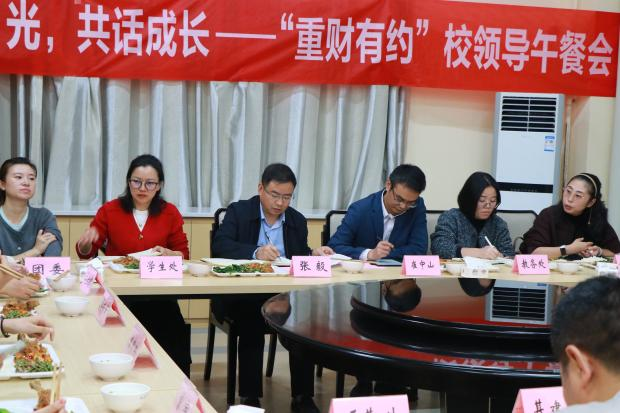 据悉,“重财有约”校领导午餐会”是学校推出的校领导与学生面对面交流平台。午餐会采取自愿报名的形式,从报名同学中随机选取10名代表参加,有效形成了“倾听学生心声,关心学生成长”的良好氛围,增强了学生对学校的认同感,为进一步提升办学治校水平,助力“新型财经名校”建设汇聚力量。
