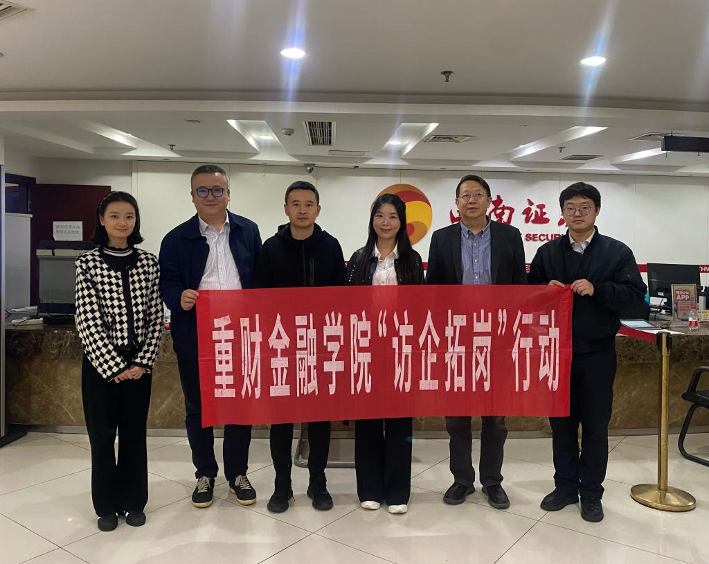 为贯彻落实教育部关于“访企拓岗促就业”专项行动相关部署,进一步深化校企合作,拓宽毕业生就业渠道,推动2025届毕业生高质量充分就业,11月12日,我校副校长李嘉明带队前往西南证券重庆第二分公司开展访企拓岗活动,金融学院院长贺晗、党总支负责人张玉华随行。