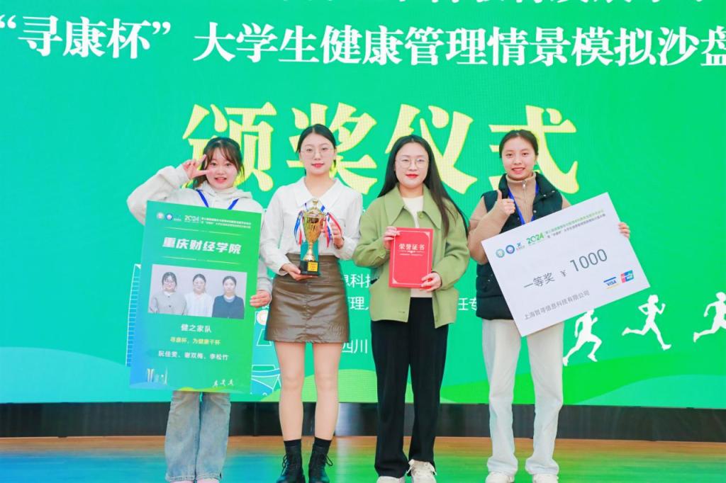 本次大赛旨在深化大学生对健康管理的认知,并提升其实践能力。通过创新的情景模拟沙盘形式,巧妙地将健康管理的理论知识与实际操作相结合,为参赛学生提供了一个在模拟环境中深入理解和应用健康管理知识的宝贵平台。我校公共管理学院对此积极响应,经过校内赛的层层选拔,最终确定“健之家队”代表我校出征成都。
