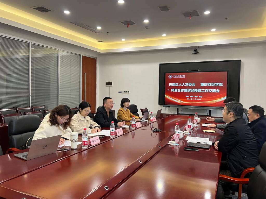 11月20日,巴南区人大常委会副主任周成清一行到访考察,副校长张立全程陪同并主持座谈会,就校地师资合作事宜尤其是区级人大的财经预算工作进行了深入交流并达成专家库建设战略合作共识。
