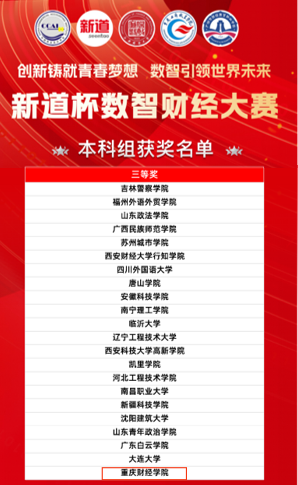 2024年“新道杯”数智财经大赛全国总决赛于12月1日胜利收官,本次比赛由中国商业会计学会和新道科技股份有限公司主办、江西财经大学承办,共有全国74所高校的精英队伍参与总决赛角逐。由我校会计学院刘柳、陈元媛担任校内指导教师,驻校导师朱小芳为竞赛指导专家,审计学专业王艳、陈慧艳、陈鑫、谭宇茜4名同学组成的代表队斩获本科组全国三等奖。