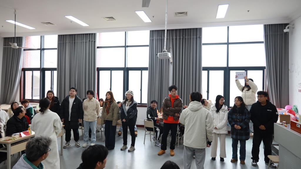 活动还包括两项特色环节。文艺表演中,同学们以一首激情澎湃的红歌《紫荆花》表达了对党和国家的热爱,歌声激昂,赢得了热烈的掌声。游戏环节将活动推向高潮,知识竞答和你画我猜两个游戏不仅考验了同学们的知识储备和团队协作能力,更进一步加深了大家对党的二十届三中全会精神的理解和领悟。