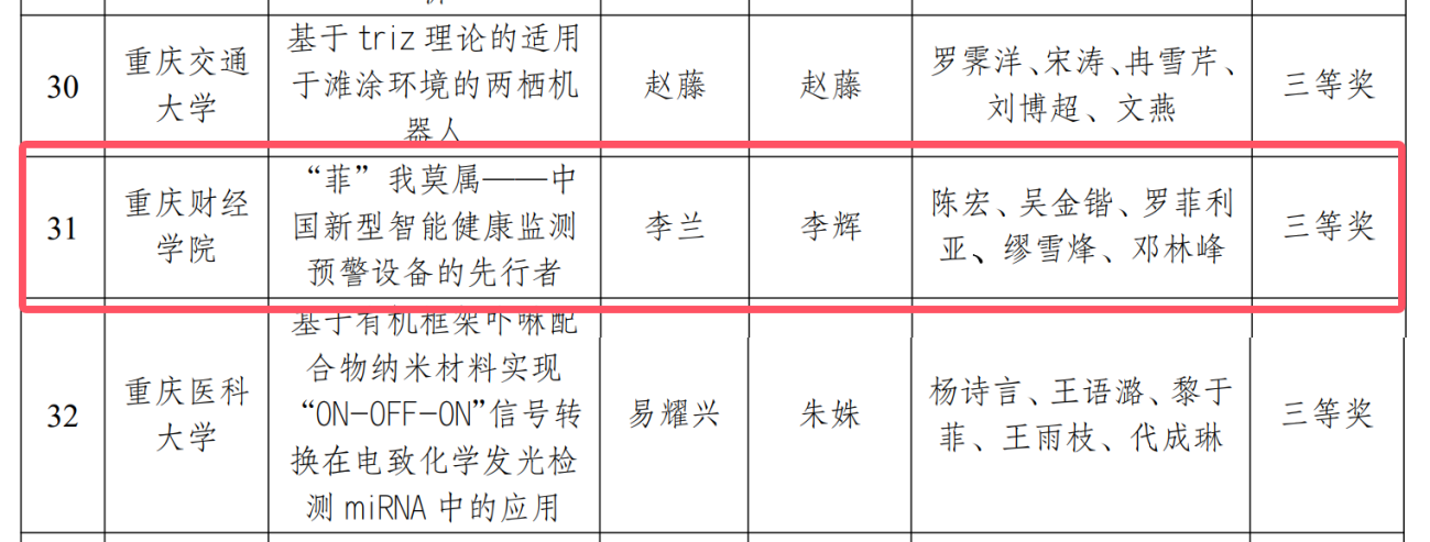 本届大赛以“发展新质生产力,促进高质量发展”为主题,分为学生组和教师组,设置发明制作类、工艺改进类、创新设计类、生活创意类、创业类、高职高专类和推广及应用类7大类。全市报名参赛项目602项,参与人数3385人,经过激烈角逐,最终评选出特等奖8个,一等奖28个,二等奖70个,三等奖106个。其中,我校公共管理学院《“菲”我莫属——中国新型智能健康监测预警设备的先行者》项目荣获市级三等奖。