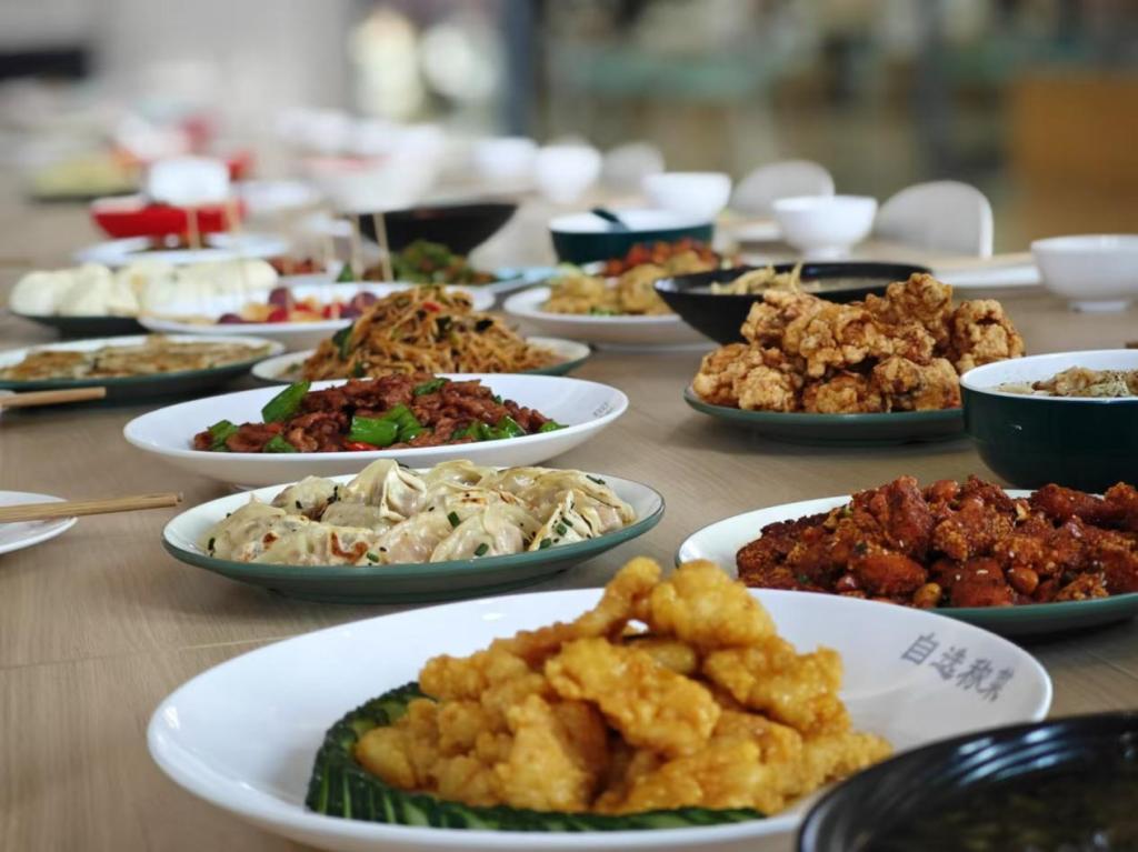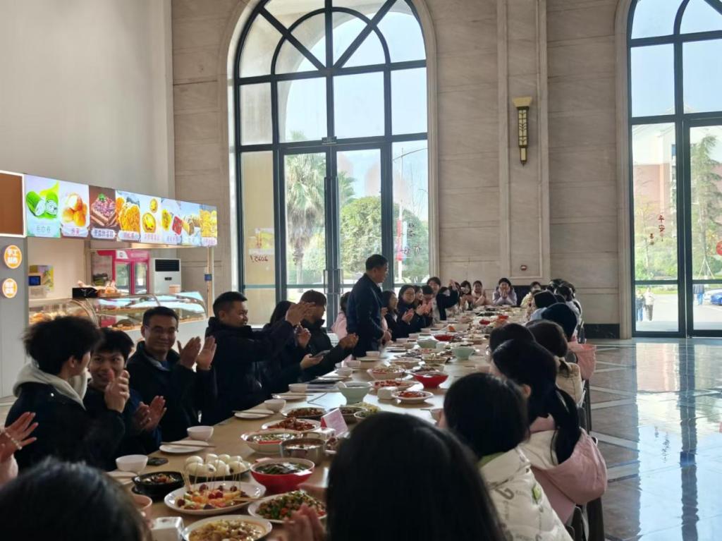 中午12时,最令人期待的团年饭环节正式开启。报名入选的学子一同围坐在长桌旁,品尝着100余道特色菜肴。这些菜肴色香味俱佳,涵盖了各种口味,满足了同学们的味蕾需求。在美食的陪伴下,大家举杯共祝新年好,共同迎接新的一年的到来。