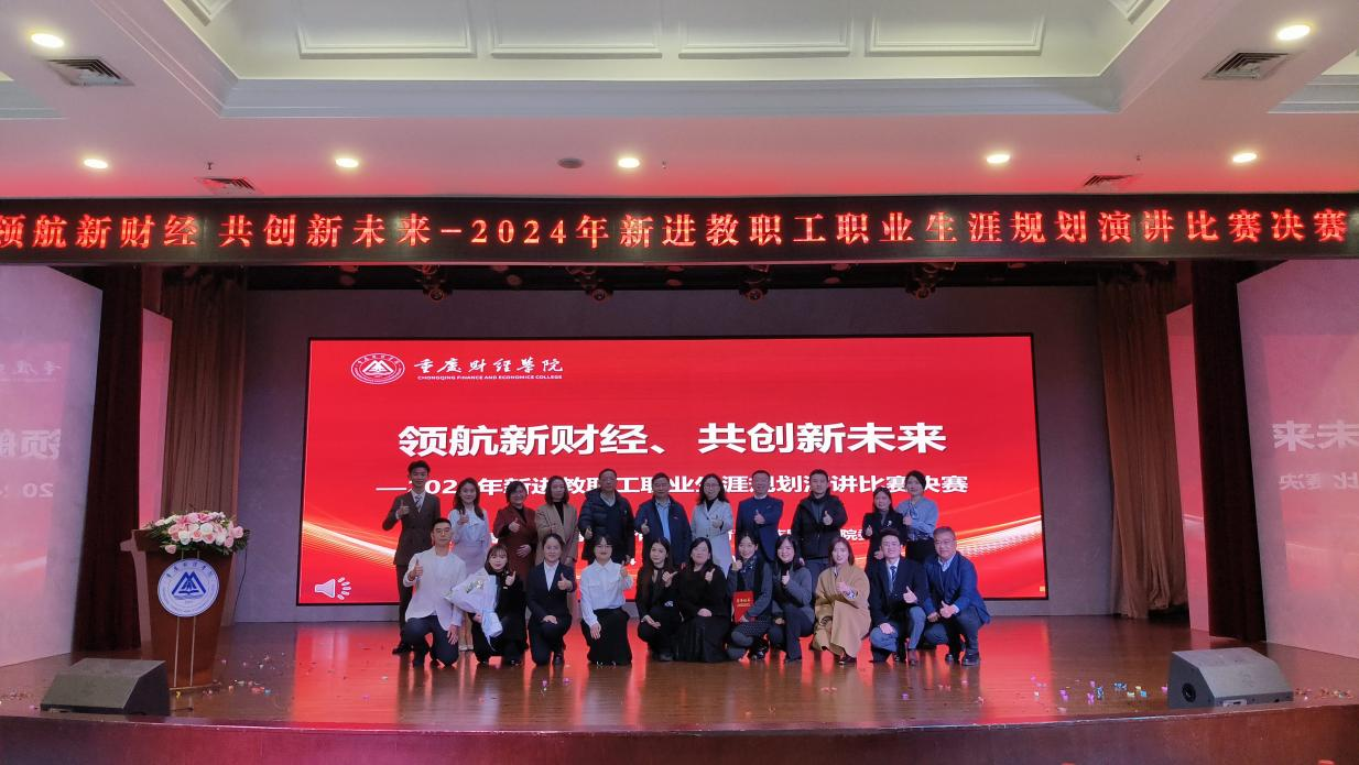 为大力弘扬教育家精神,以赛促建高素质专业化教职工队伍,助力学校创建中国一流新型财经大学,12月30日下午,领航新财经,共创新未来——2024年新进教职工职业生涯规划演讲比赛决赛在学术报告厅顺利举行。学校教学指导委员会执行主任杨林教授、金融学院院长贺晗教授、学生处处长唐川川、公共管理学院周广竹教授、金融学院郭静林教授担任评委;学校党委书记张毅、党委副书记房朝君、副校长李嘉明、副校长张立、总督学陈旭及校长助理兼新媒体艺术学院院长张红梅出席大赛,各二级学院教师代表、学生代表300余人观摩大赛。