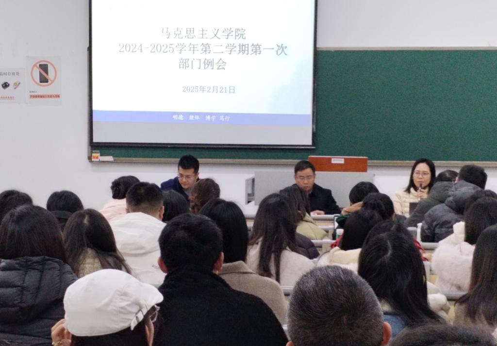 2月21日,马克思主义学院在教学楼1523教室召开2024-2025学年第二学期全体教师第一次工作例会。会议由学院常晓薇院长主持。学校党委张毅书记出席会议并作工作指导。