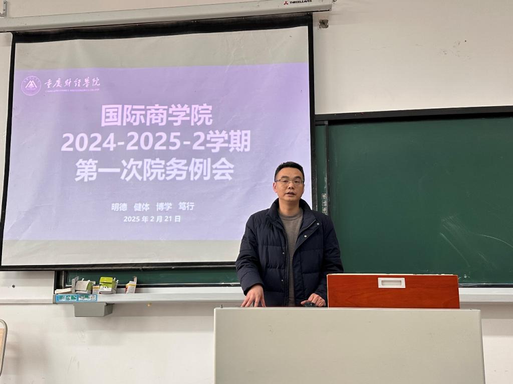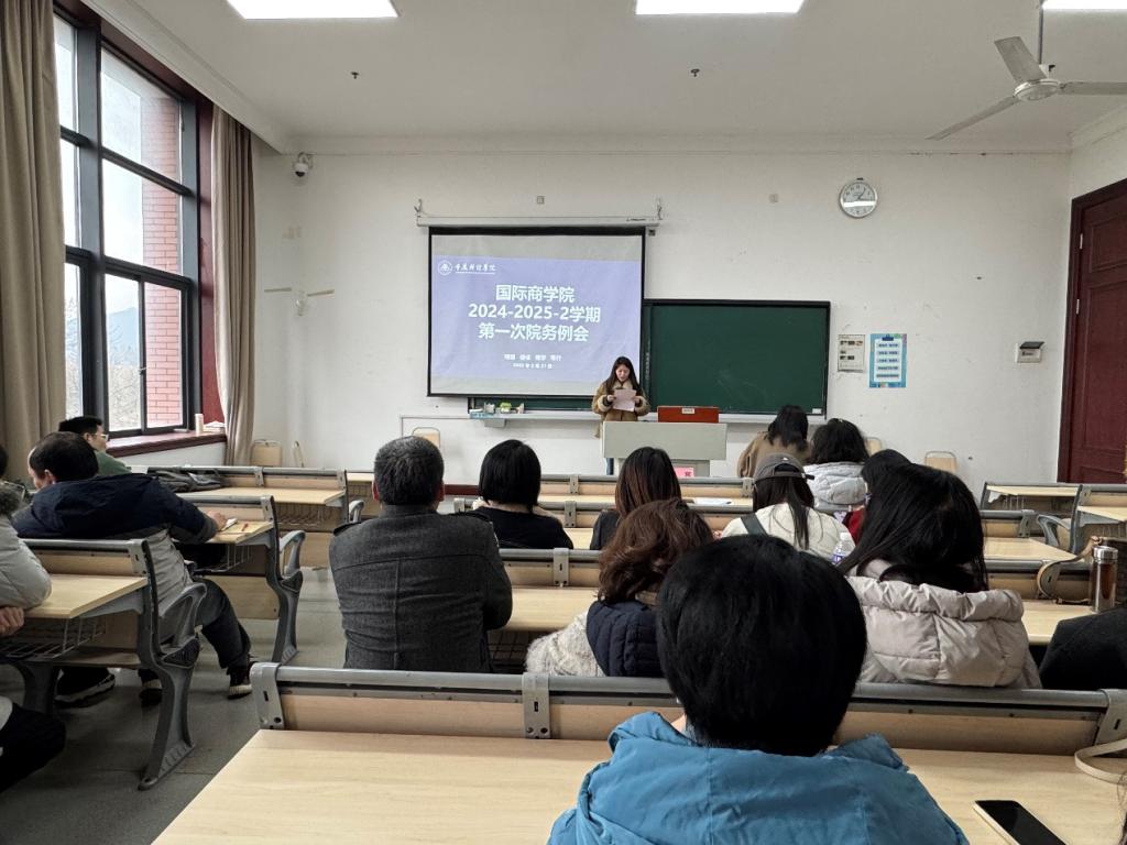 2025年春季学期开学之际,我校国际商学院在教学楼1319教室召开了新学期第一次院务会,学院全体教师参会,副校长崔中山出席会议,会议由国际商学院党总支书记宋钰静主持。会议聚焦新学期学校重点工作,传达最新教育工作精神,并对未来发展提出明确要求。