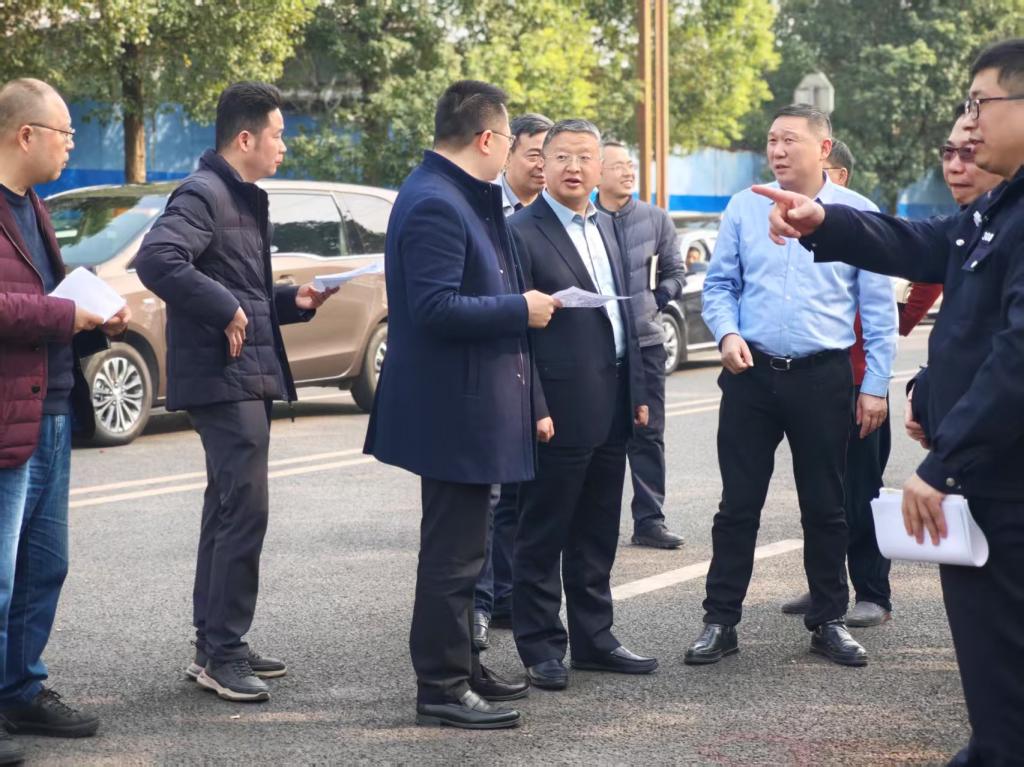 图为巴南区副区长刘功峰一行督查督办学校西门交通治理工作