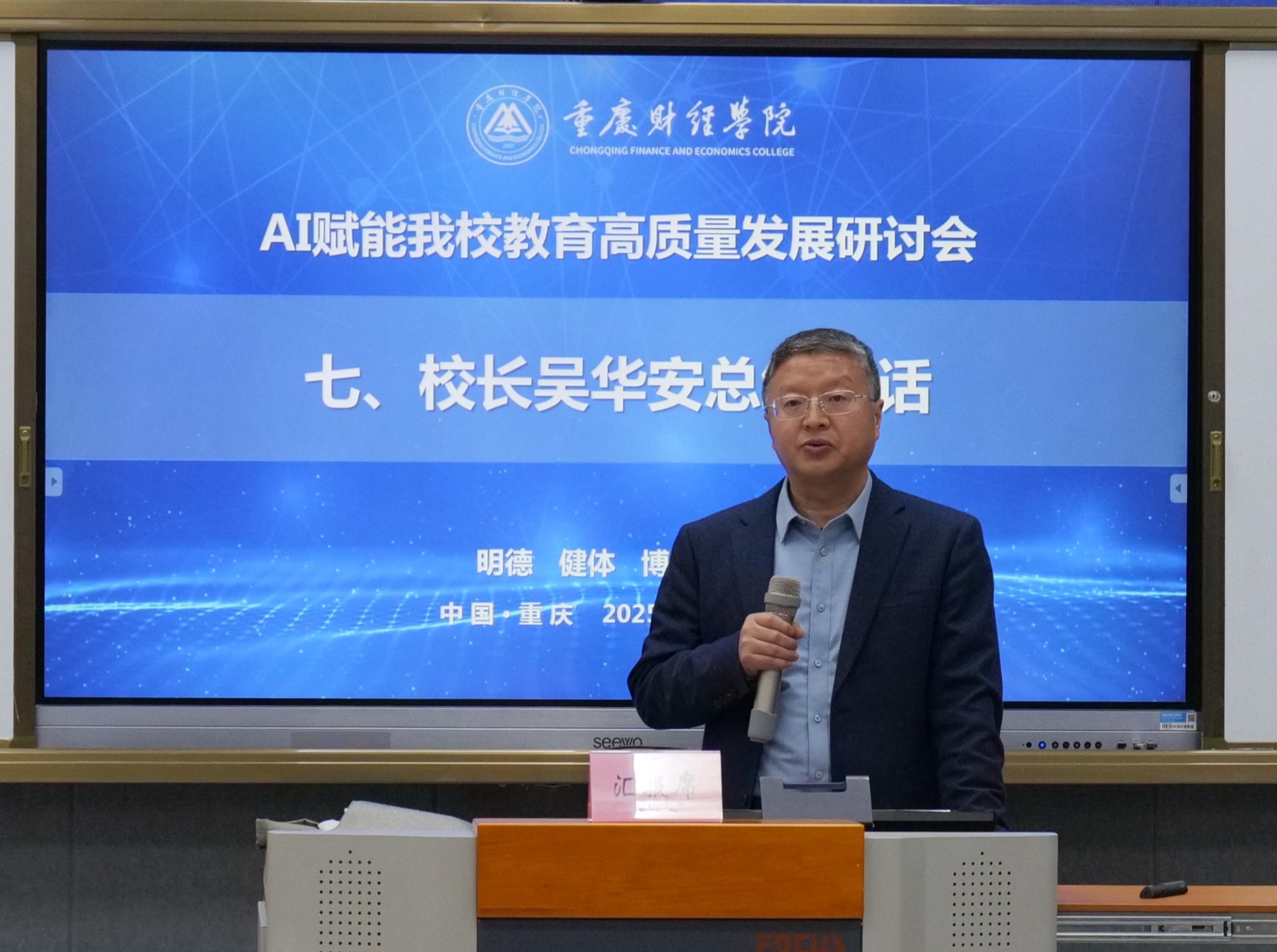 校长吴华安总结指出,多年来,学校持续探索教育教学改革与数字化转型发展,作为应用型高校,推动产教融合和智能化转型不是选择题,而是必答题。学校应结合时代变革因产而教,因势而变,拥抱技术、辨别技术、驾驭技术;坚定教育教学、课堂课程、人才培养改革;坚持有温度的教育。推动数字教育在重财“快起步、走扎实、出效果”,确保智能技术真正服务于育人本质。