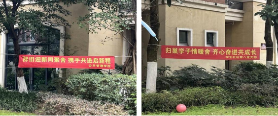 低层社区7栋和13栋,公共管理学院开展新学期返校暖心活动,有“辞旧迎新同聚舍,携手共进启新程”和“归巢学子情暖舍,齐心奋进共成长”的美好祝愿,有承载了新学期美好祝愿和目标“心愿墙”,还有“寝室合照投稿”活动,为新学期注入了生机与活力。
