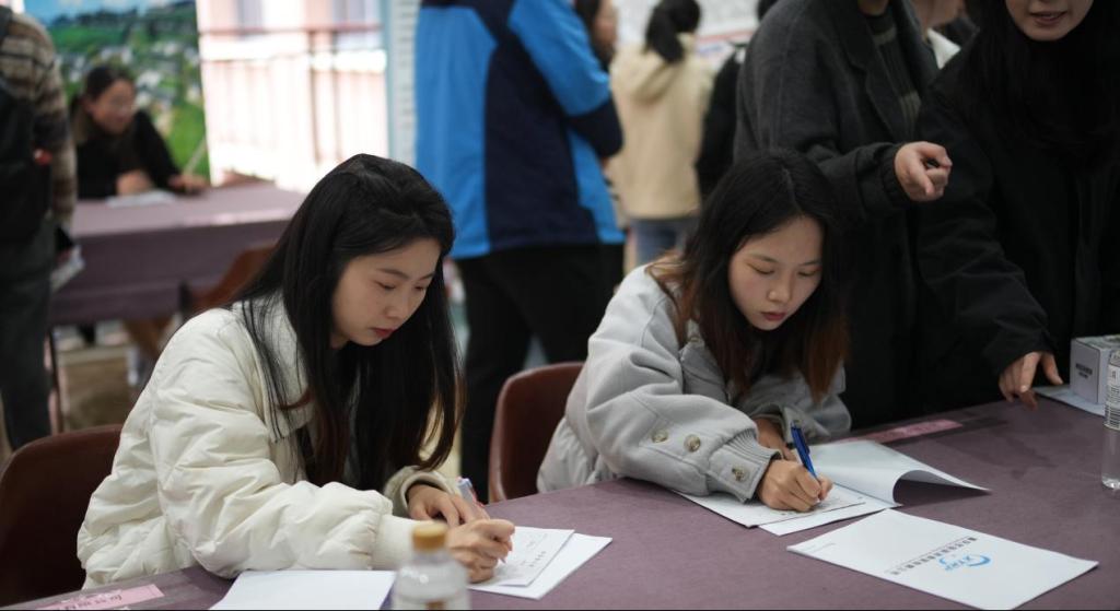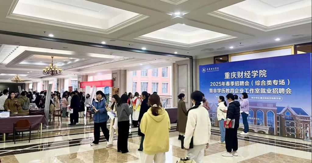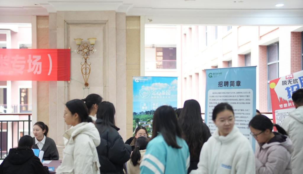 本届校园招聘会优选重庆茶业(集团)有限公司、招商证券股份有限公司等近40家企业参与,涵盖财会、金融证券、人工智能、新媒体等多个行业领域,提供800余个就业岗位,吸引本校在内多所高校1000余名大学生参会,近100人达成初步就业意向。