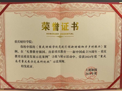 为全面贯彻落实党的教育方针,聚焦重庆教育高质量发展而精心打造的权威平台,挖掘并呈现重庆教育高质量发展的优秀案例,促进教育模式创新。“礼赞教育强国,出彩重庆教育——新中国成立75周年·重庆教育高质量发展示范案例”寻找与展示活动应运发起。在此次评选活动中,我校《澳门新葡京博彩党建引领新财经助力乡村振兴》案例荣获由上游新闻颁发的2024年度“重庆高质量发展示范本科院校”示范案例。