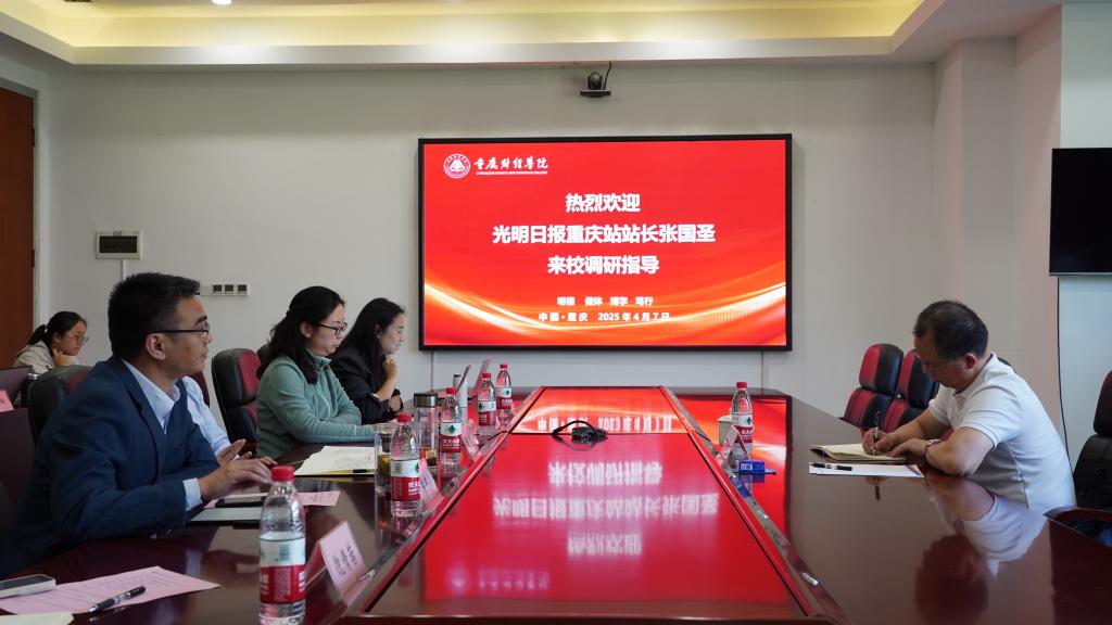 4月7日,光明日报重庆记者站站长张国圣来校调研指导宣传工作党委书记张毅、副书记房朝君、校长助理张红梅及相关部门负责人参加,会议由崔中山副校长主持。