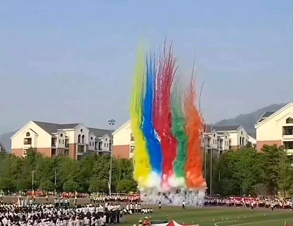 在庄严的升国旗仪式后,吴华安校长致开幕辞。他强调:“当代大学生要争做健康中国的'践行者'、体育精神的'传承者'和智慧体育的'开拓者',让青春在运动中绽放光彩。”运动员代表王灿和裁判员代表陈欣分别宣誓,承诺遵守比赛规则,确保赛事公平公正。随着20组彩烟齐鸣,李春雷副校长宣布运动会正式开幕。