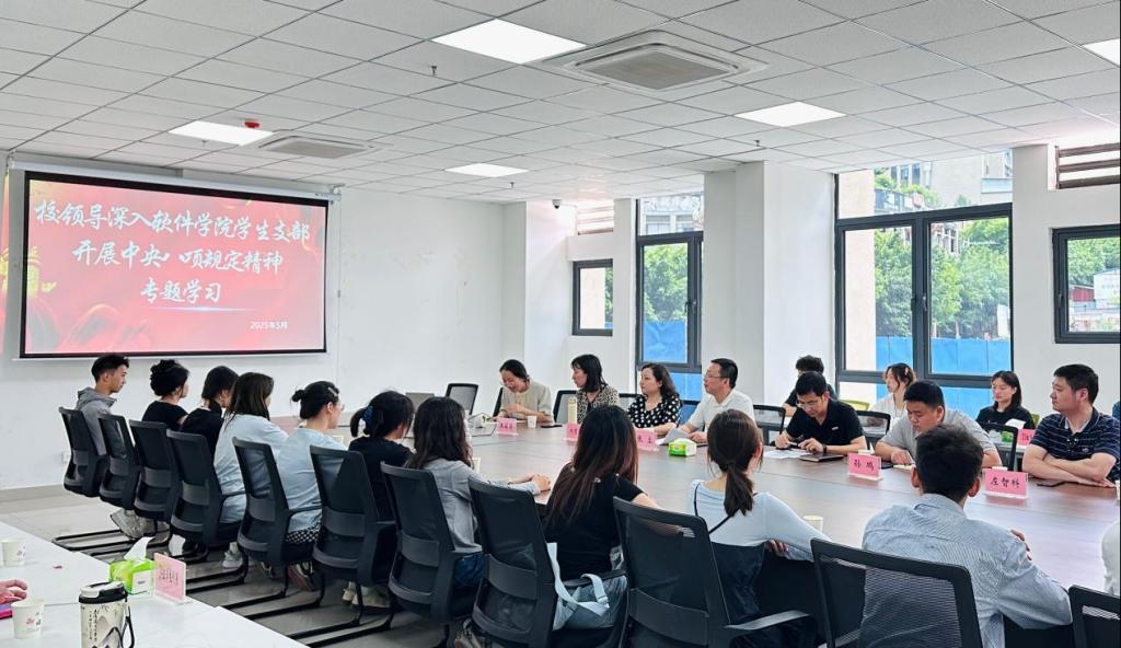 为深化党建引领作用,推动党纪学习教育走深走实,5月16日,我校软件学院学生党支部在G1-109召开中央八项规定精神专题学习会,校党委委员、副校长,学院联系领导张立讲授专题党课。软件学院党总支副书记刘有沛、副院长夏祥礼,教师代表、学生党员和部分入党积极分子参加学习。