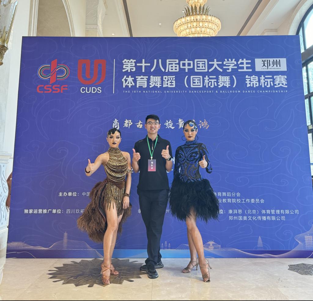 近日,由中国学生体育联合会主办,中国学生体育联合会大学体育舞蹈分会、中国学生体育联合会高等职业教育院校工作委员会承办的“第18届中国大学生体育舞蹈(国标舞)锦标赛”顺利举行。我校体育舞蹈俱乐部6名学生队员在主教练李巨泽带领下代表学校参加本次大赛。
