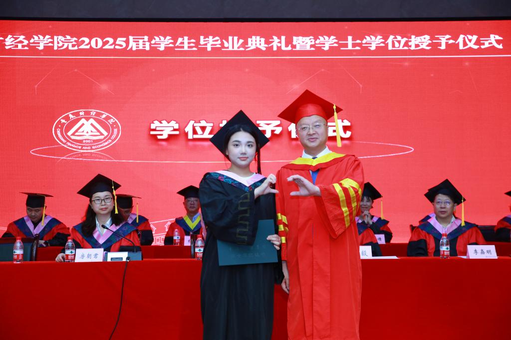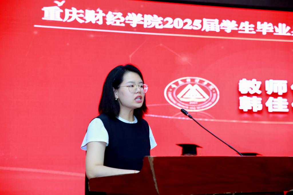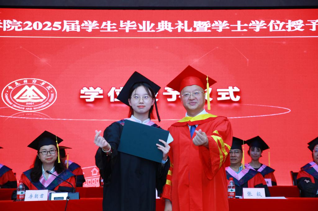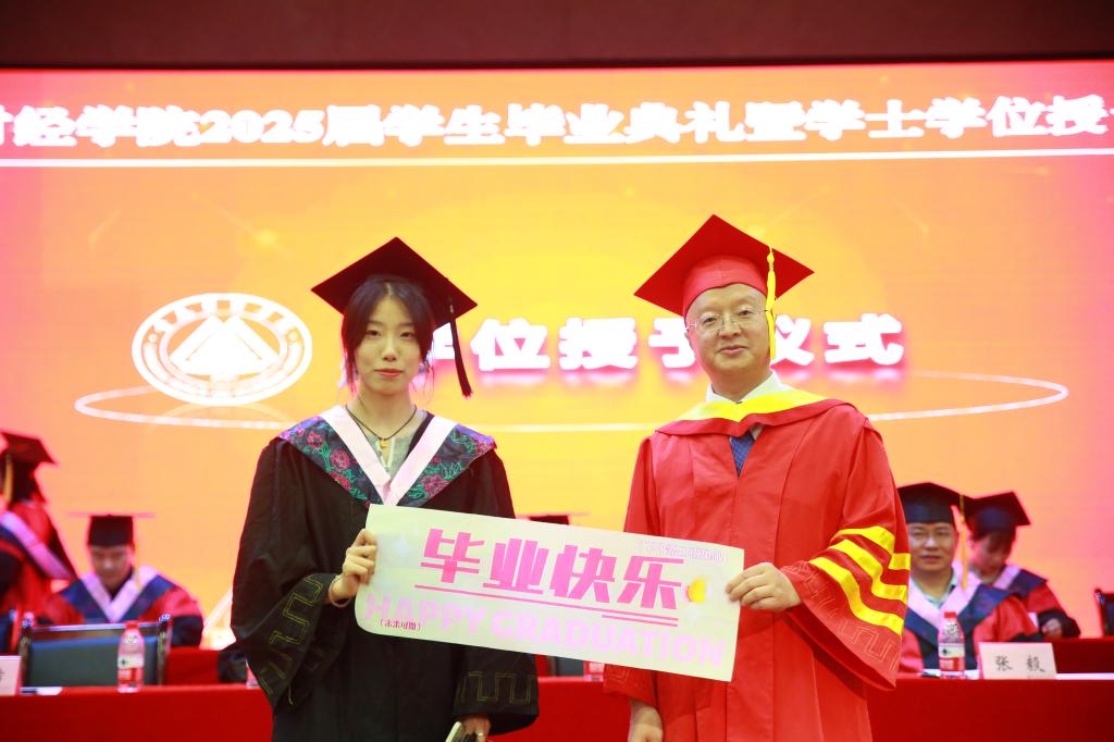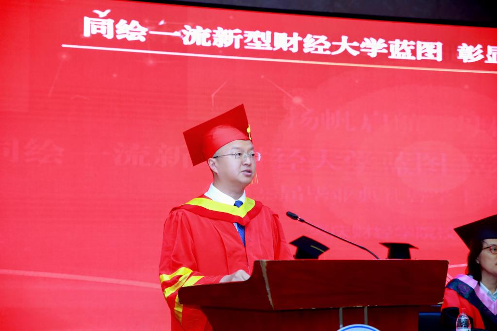 吴华安代表学校向师生致以衷心的感谢和诚挚的祝贺。面对即将踏上新征程的重财学子,他提出三点期望:一是做时代“逆行者”,到基层沃土“为中国式现代化建设贡献青春力量”;二是做人生“追光者”,既要“面包自由”更要“把日子过成自己想要的模样”;三是做母校“代言人”,未来以“大V”身份为学弟学妹内推机会,成为联结母校与社会的桥梁。他祝福毕业生“此去前程似锦,归来仍是少年”。