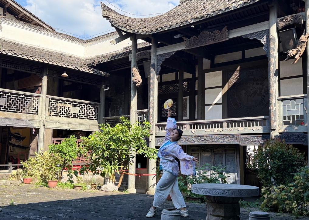 2025年7月,我校新媒体艺术学院“巴山e行”暑期“三下乡”社会实践服务队走进重庆市巴南区丰盛古镇,开展以“非遗文化传承与数字传播”为主题的实践活动。队员们深入古镇街巷,向当地非遗传承人学习重庆市级非物质文化遗产——莲箫舞蹈,用青年视角记录这一传统艺术的独特魅力。